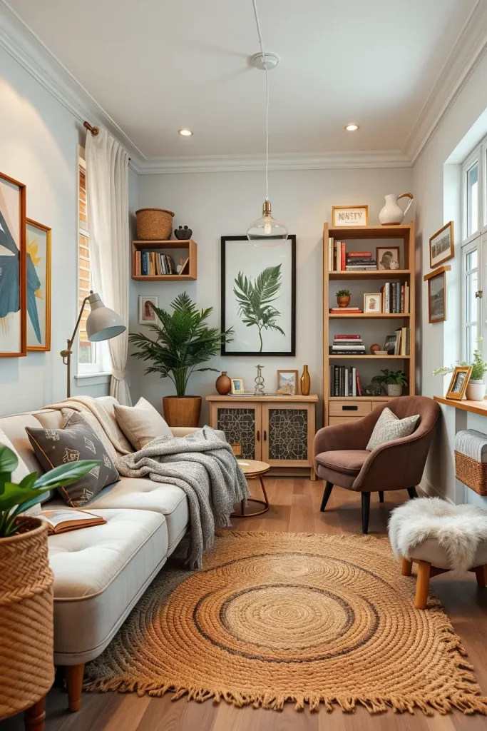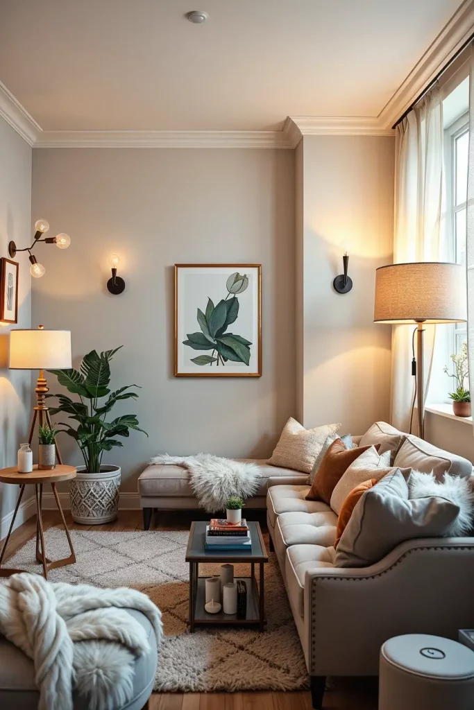 You achieve comfort in a little living room by piling together different elements. I add warmth without taking over with layers such as accent pillows, throw blankets and area rugs. Using this approach helps the room look thoughtful and promotes relaxation for users.