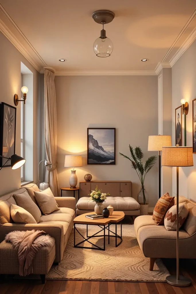 I find that using several layers of lighting makes it simple to combine practical use with attractive lighting. Houzz explains that adding three lights in each room makes the atmosphere better which is very useful in tight spaces.