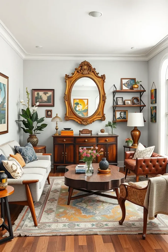 Adding a combination of modern and vintage items can help a small living room look organized and special to you. With this method, you can combine modern style with vintage pieces, resulting in a texture that isn’t seen very often.