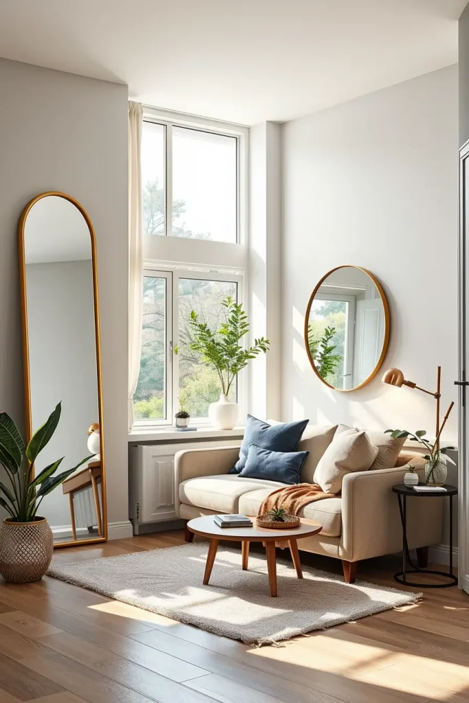 People often overlook mirrors as important tools in interior design and they are particularly helpful in small rooms. One thing I’ve done a lot is use them to open up the space in my living room. Wherever you put them, they let daylight enter and make the space appear larger. This idea does more than improve how a space looks—it can also fill in dark spaces and give more lightness.