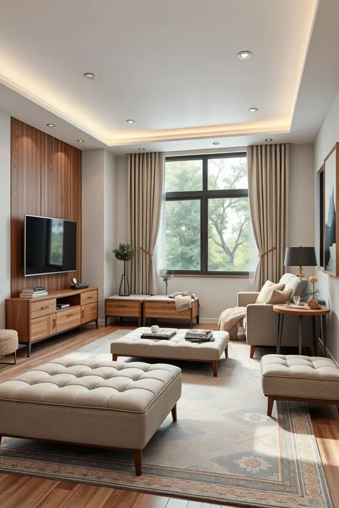 Planning for narrow or compact rooms means that folding furniture is more than just a good idea; it’s necessary. If some furnishings can collapse, slide or be stowed away, the living room can be used in many ways. The philosophy behind this concept is to clear up area without sacrificing enjoyable or practical use.