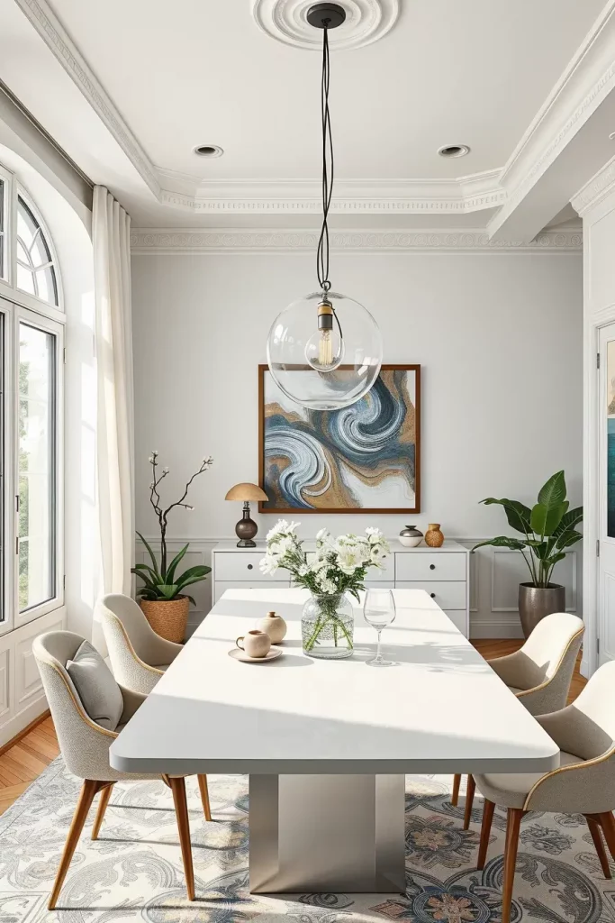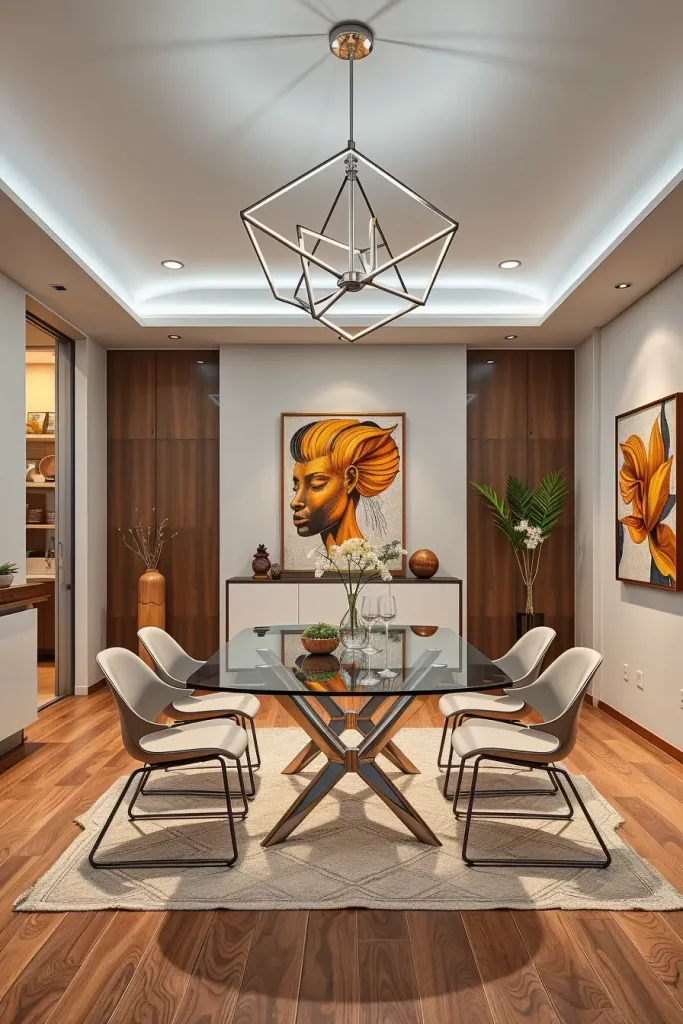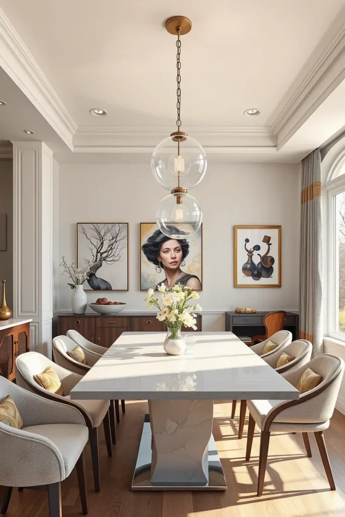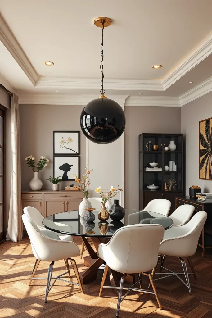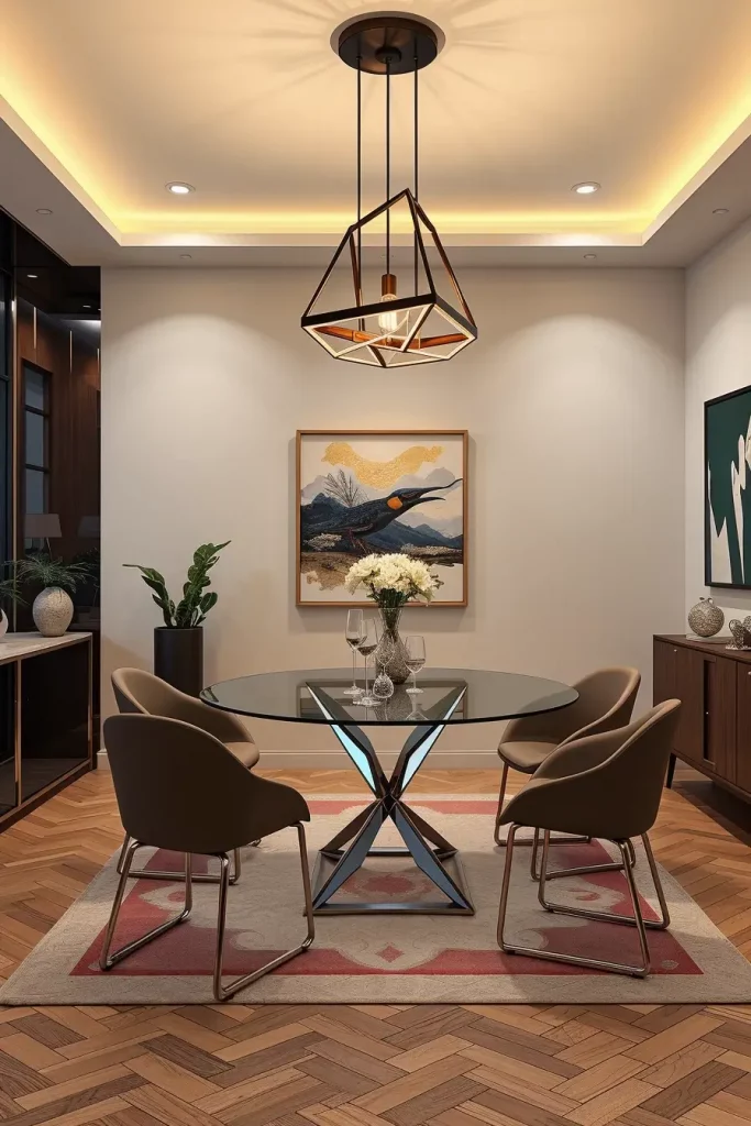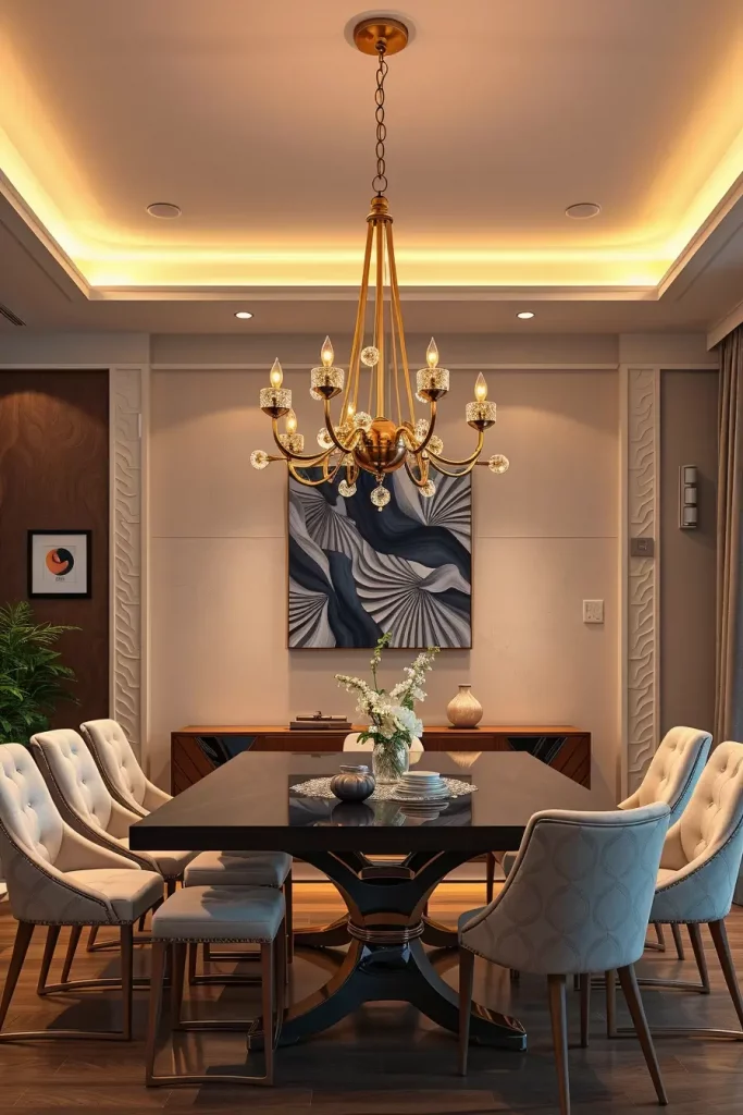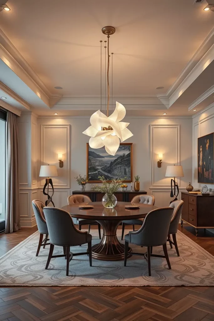 A statement chandelier serves as a design guideline that shapes the entire dining area according to my practical experience. Veranda Magazine reports that selecting luxury fixtures resembles selecting artwork because you need to match design aesthetics with functional beauty.
