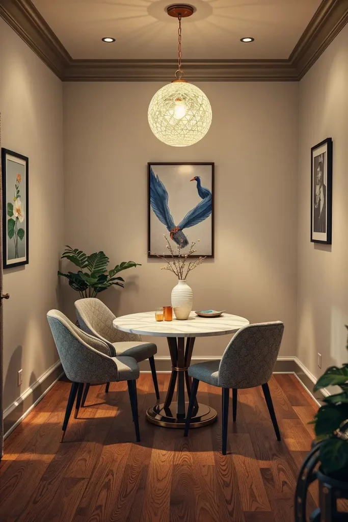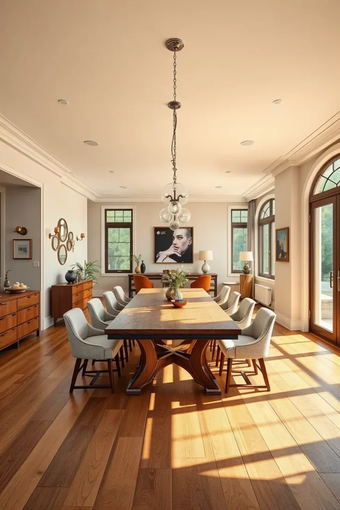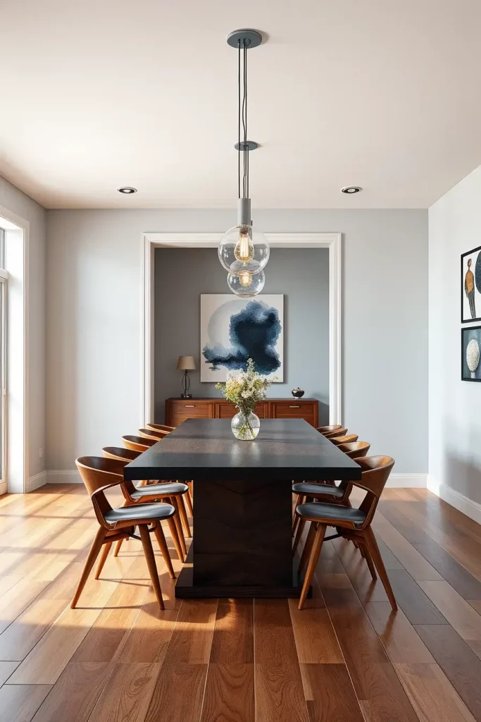 Furniture needs to be adjustable for accommodating guests because stackable and folding chairs should be kept in storage near the dining area. I combine this setup with lighting solutions that either have sliding components or multiple arm fixtures which expand their reach according to requirements. The lighting system must deliver a continuous effect between hosting four guests or twelve guests at the table.
