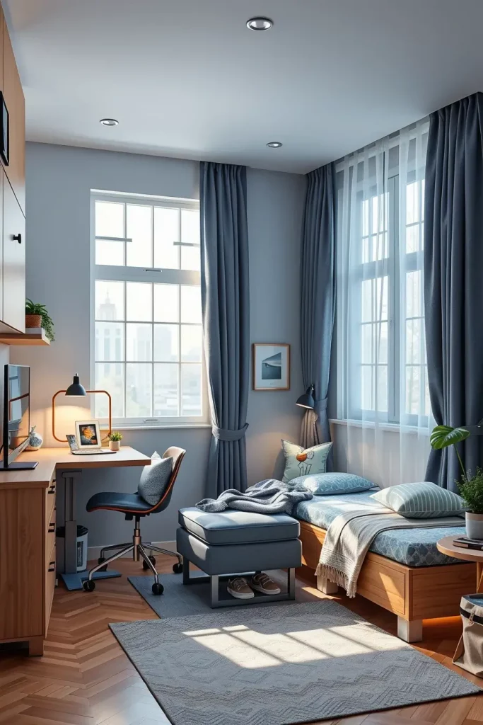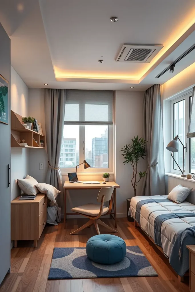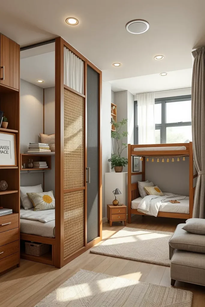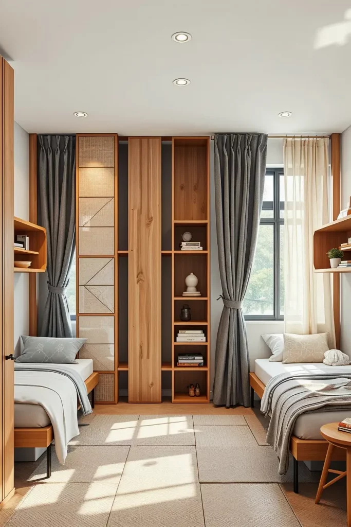 Dormtropolis 2025 reinventes the concept of shared dorms by adding artistic room dividers that do not compromise the lighting or ventilation, but still enable room-mates to have some privacy. But these are not just barriers, these are fashionable functional design elements that help delineate areas in a small common area. I have employed translucent folding partitions, soundproof modular partitioning, and even partitions which incorporate storage and can also be utilized as bookshelves. The appropriate divider will provide the students with the necessary mental distance to rest, study, or unwind.