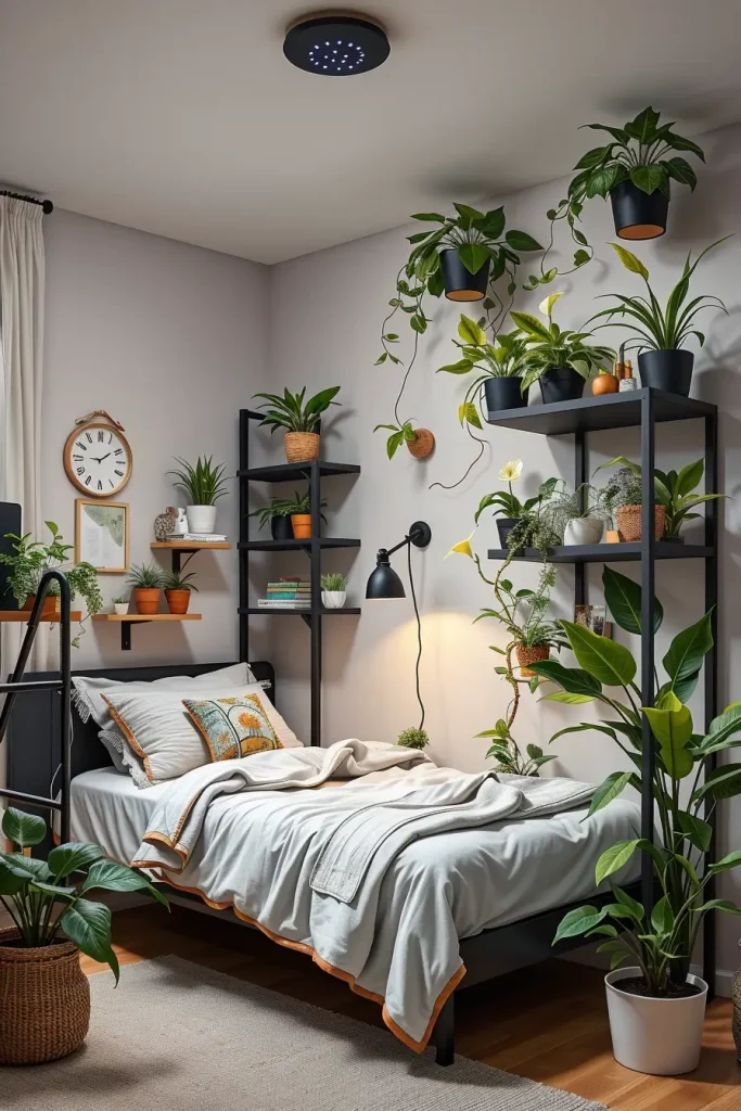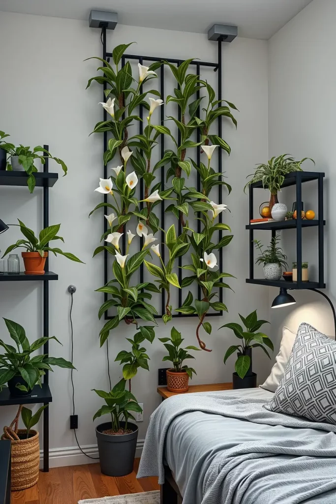 Popular options are peace lilies, spider plants, and snake plants, all of which are low-unstress and very efficient at breaking down VOCs. The vertical gardens or modular units with incorporated LED grow lights and water sensors are used in many dorm setups. The finishes typically finish off the rest of the room palette with ceramic pots or matte black frames.