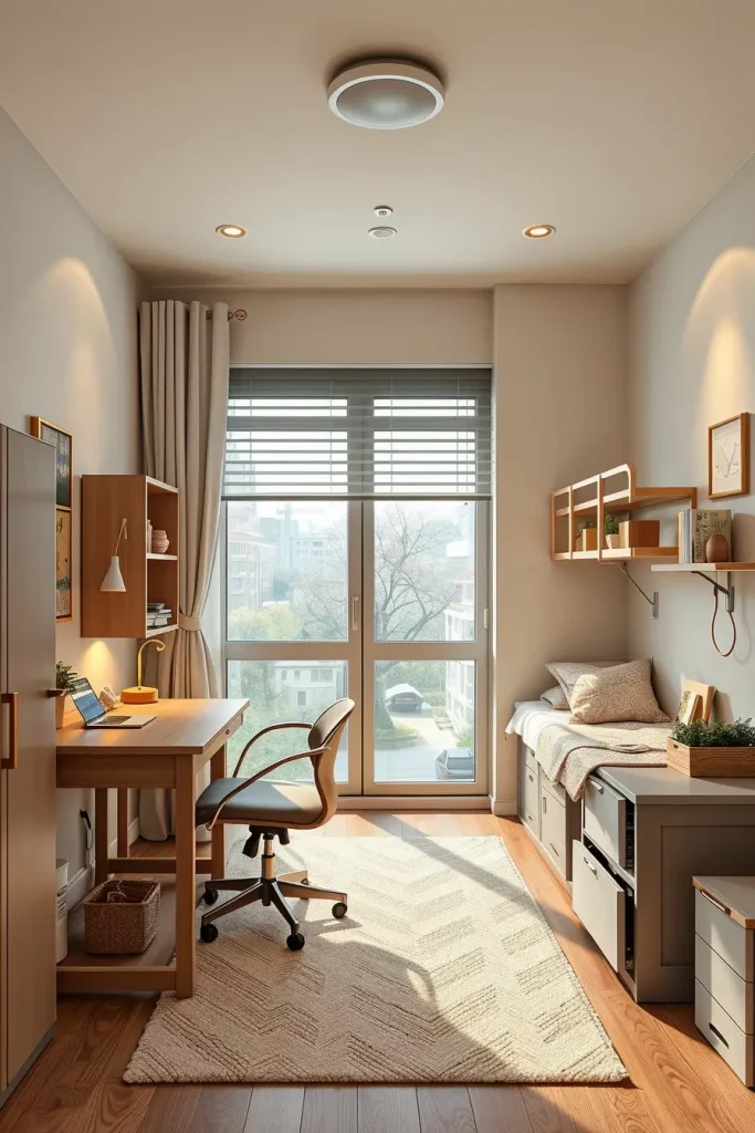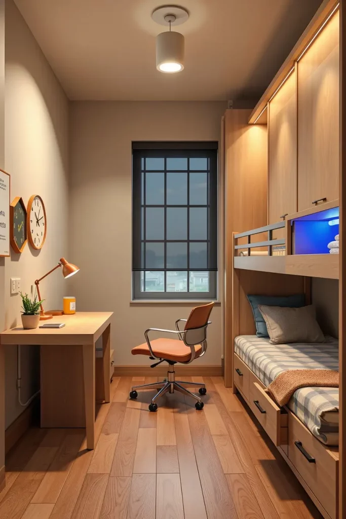 The most important factor in dorm design is vertical efficiency, and the most multi-functional loft beds with hidden desks are the smartest space I have ever worked with. These beds elevate the sleeping area above ground level; beneath which is an entirely distinct working area. In Dormtropolis 2025, these arrangements are smooth, space-conserving and technologized.