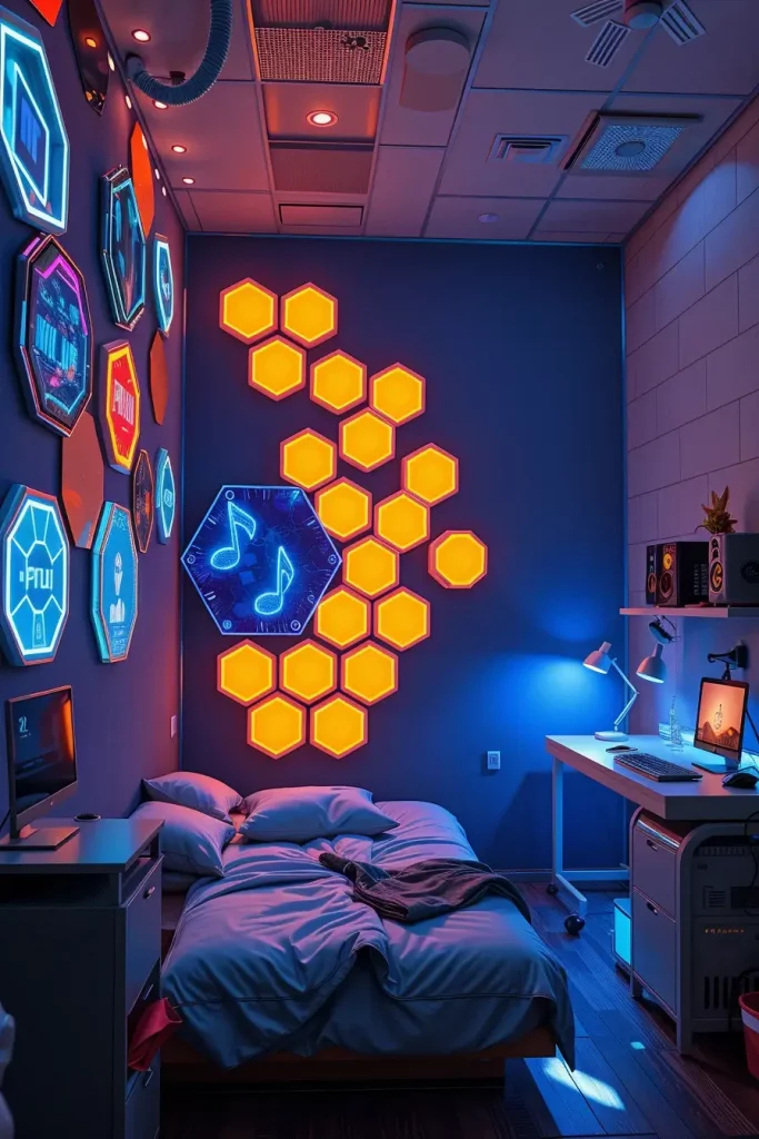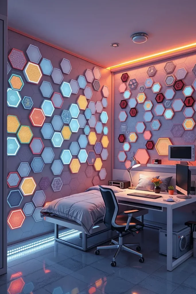 I select hexagonal acoustic panels with built-in reactive lighting strip or pressure-sensitive materials. They are easy to mount, and can be synced via Bluetooth audio to display bass beating, vocal frequencies or even the ambient noise levels. Even some of my installations have touch-sensitive controls which enable manual override and mood preset selection.