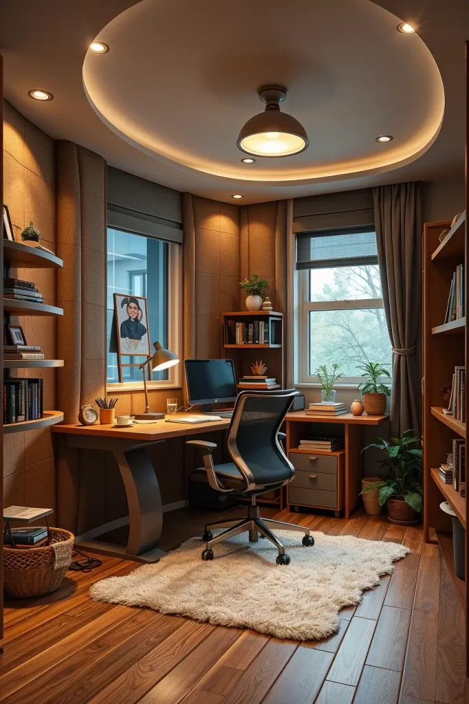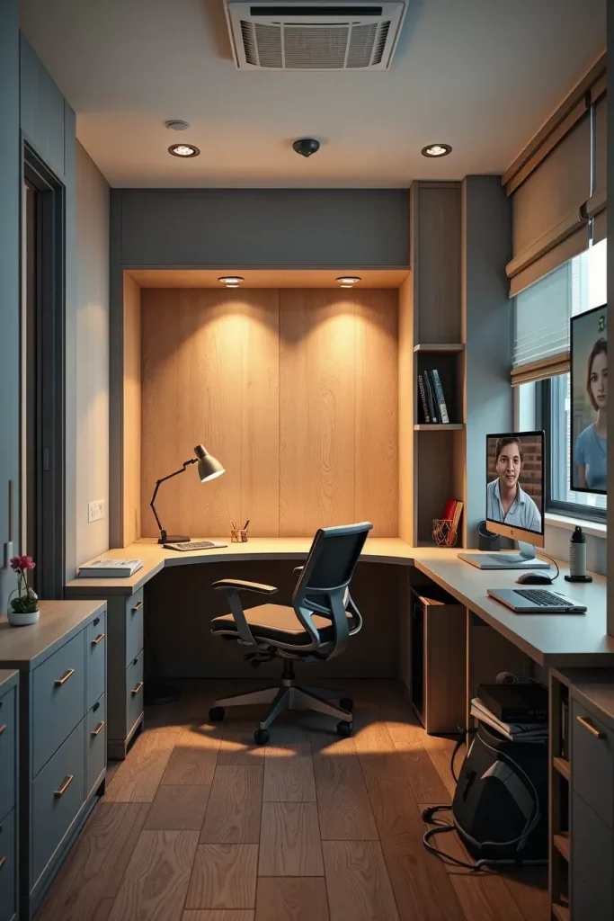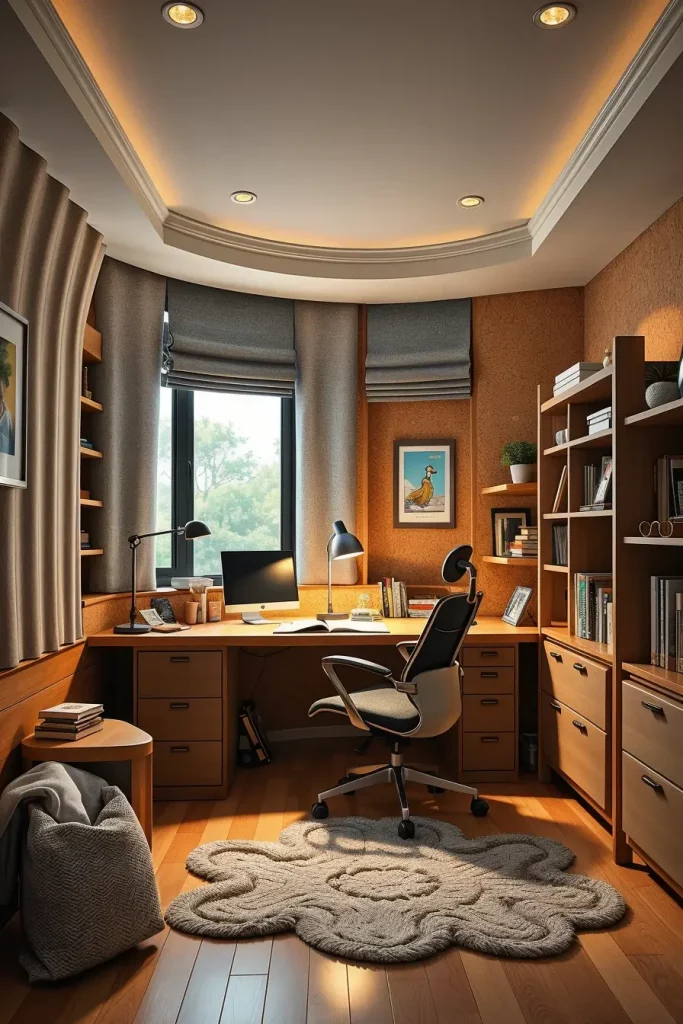 I have visual and acoustical isolation in these corners with felt or corkboard wall lining. Lumbar support ergonomic chair is necessary, as well as a desk, which has pop up power stations and integrated cable management. Others have compact desktop diffusers, LED task lamps, and tablet stands to declog the arrangement. Floor carpets and canopy micro-cocoons contribute to the effect of being in a cocoon.