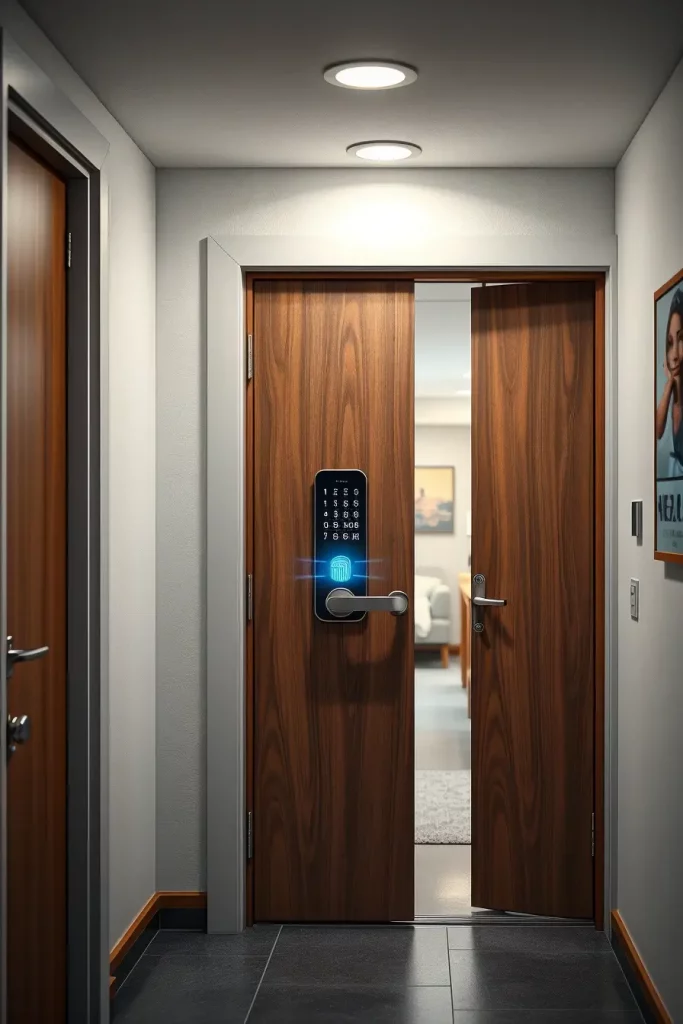 In my designs, I am incorporating the fingerprint pads or NFC sensors into the door frame itself. These lockers are synced with an app to administer them and share roommates. Some dorms now use facial ID that unlocks when the user approaches, and I’ve added motion-activated lights near the entrance for nighttime visibility. All this is incorporated into a clean minimalist door design that does not shout high tech.