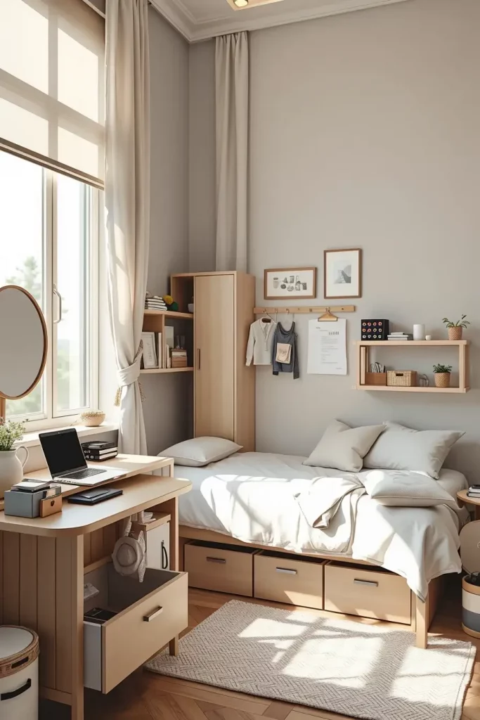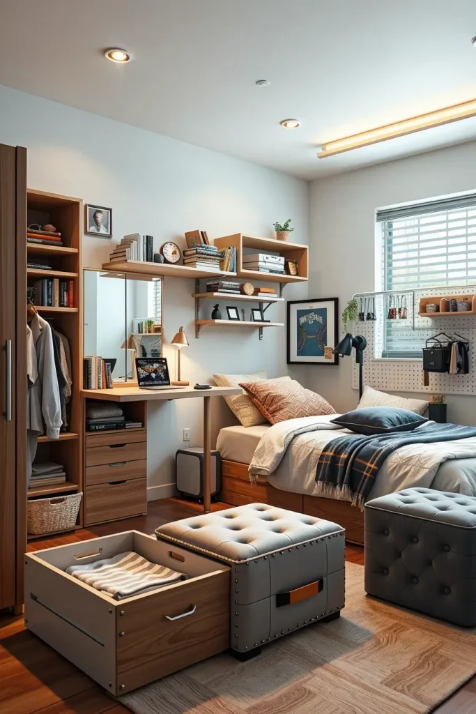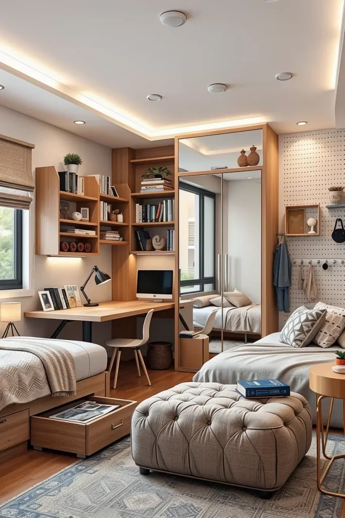 The dorm decor which functions as intelligent storage is one of the smartest evolutions of Dormtropolis 2025. Form should follow function in a small space–but now function follows form, also. I have also planned and observed dorm arrangements that have incorporated secret storage spaces, sectioned ottomans, and headboards that served two functions, making every spare inch a functional design element. This is more than minimalism, it is about making the best use of style and efficiency.