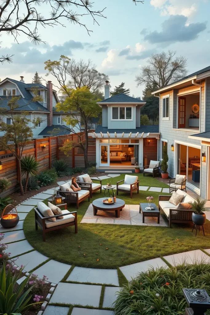 Unique seating arrangements allow family backyards to adapt to different group sizes and occasions. I approach these layouts by breaking away from single seating clusters and instead creating layered or circular arrangements that encourage interaction. This design approach works especially well for gatherings where conversation and flexibility matter.