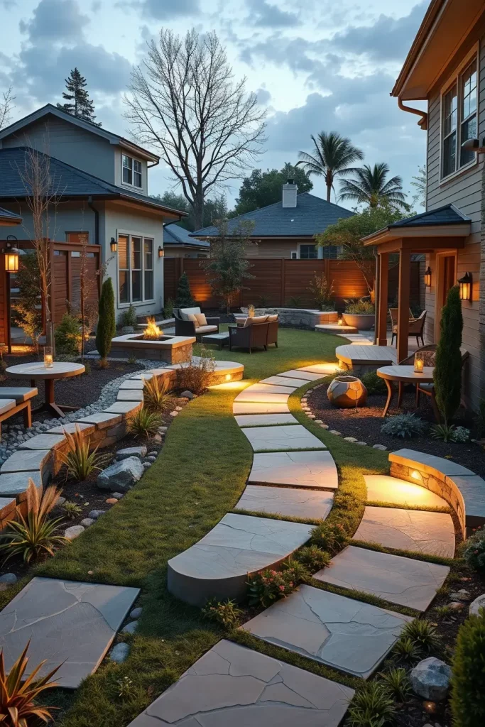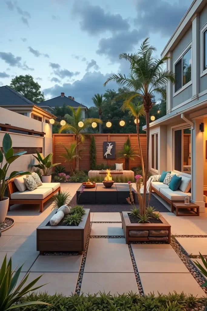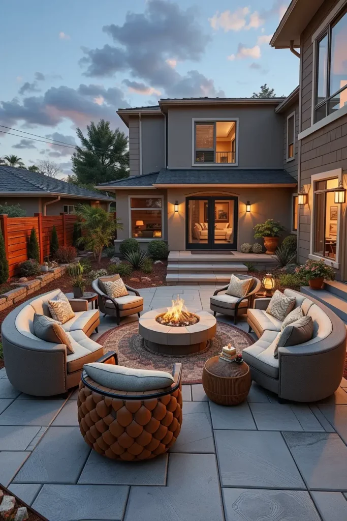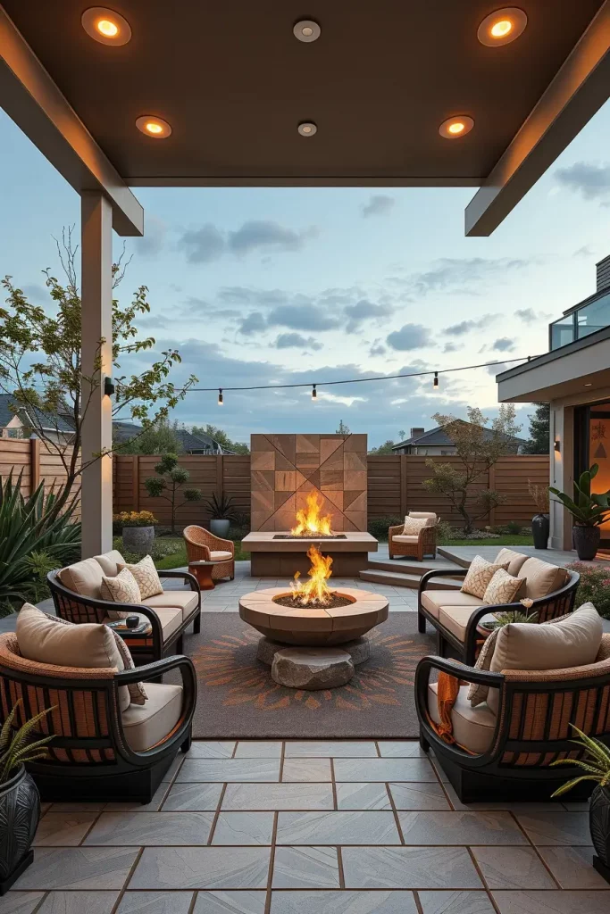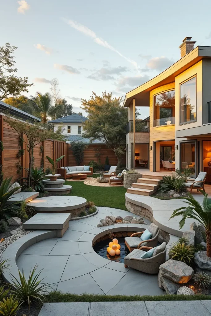 Modern Backyard Layouts With Fire Features For Family Evenings