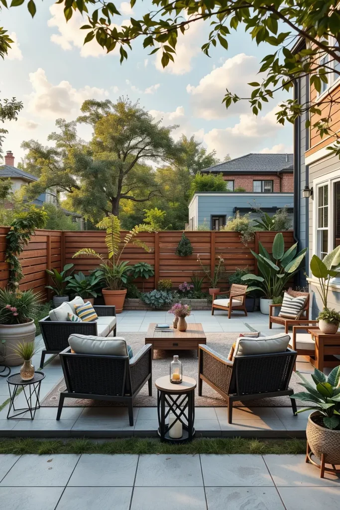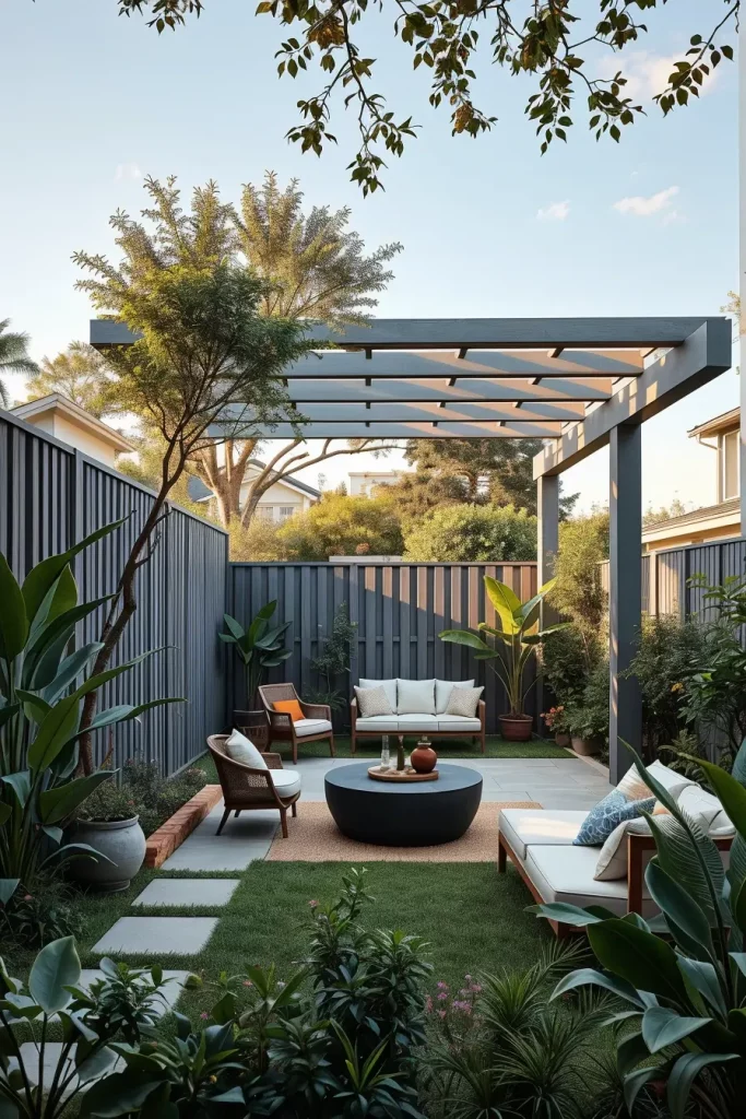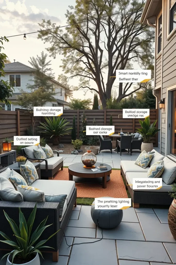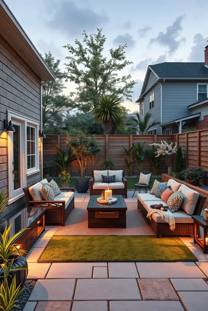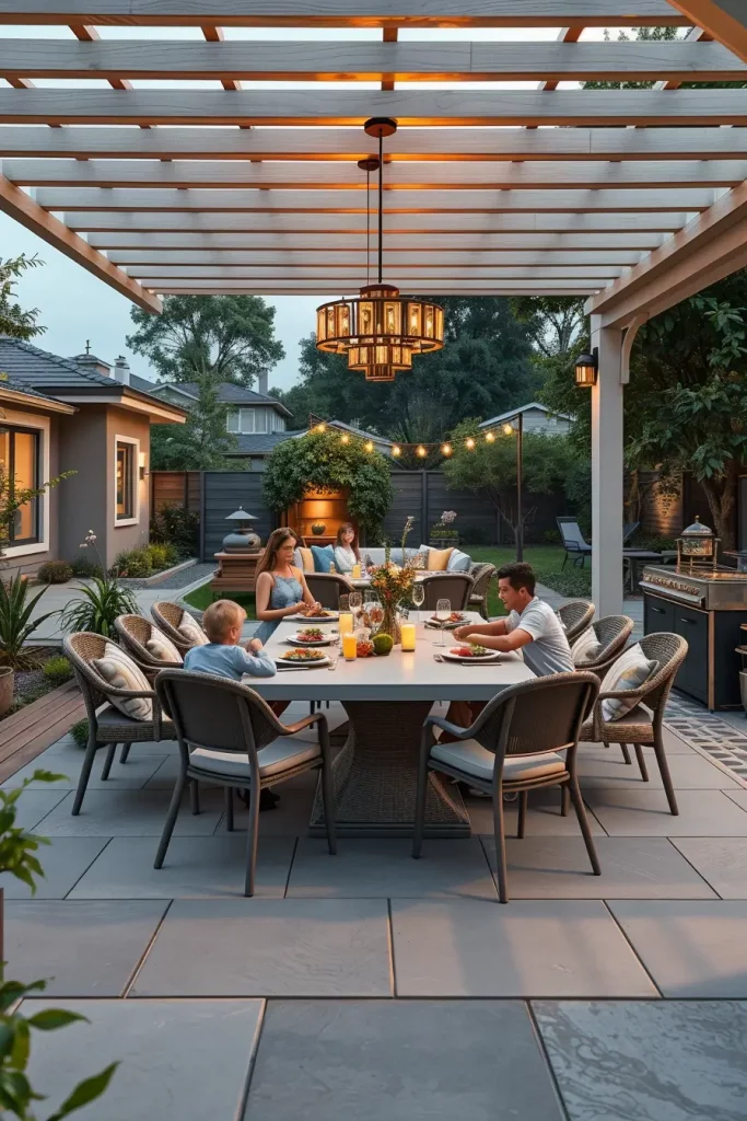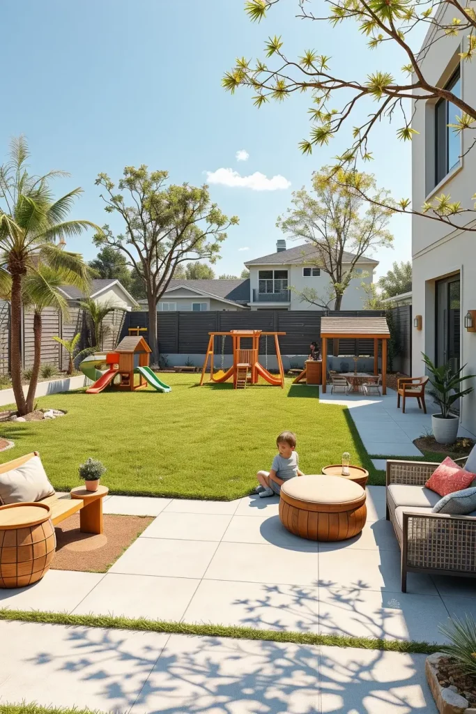 I usually incorporate transformable furniture such as benches with built-in storage, foldable dining tables, and seating that doubles as play surfaces. In larger yards, I divide the space using low planters, pergolas, or changes in flooring materials rather than walls. For smaller yards, vertical elements like privacy screens and layered lighting help expand the visual space without crowding it.