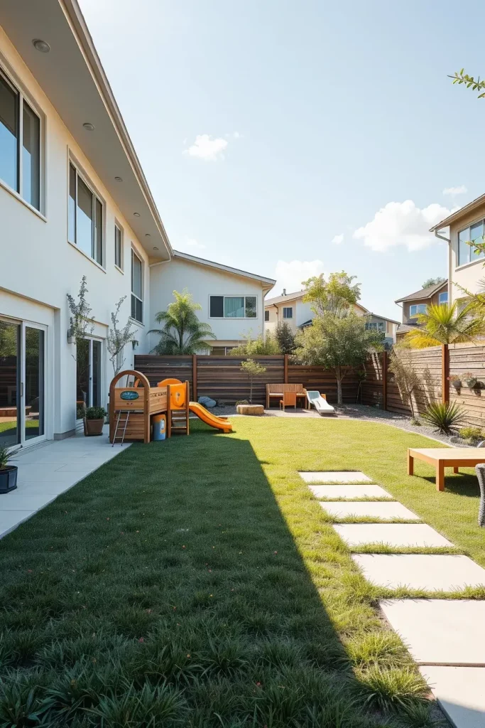 What I would add here is modular play equipment that can be reconfigured or removed over time, ensuring the backyard evolves alongside the family.