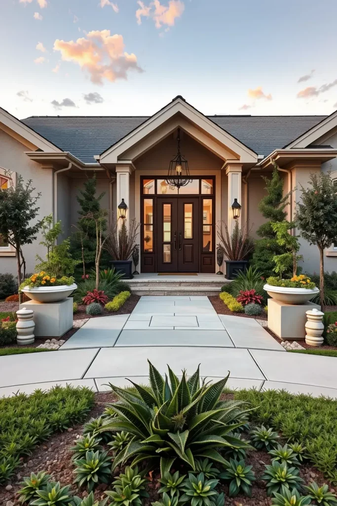 Artistic plant compositions are central to front yard landscaping 2026, especially when the goal is a bold and memorable first impression. I treat plant placement as a form of visual art, focusing on rhythm, scale, and contrast rather than traditional symmetry.