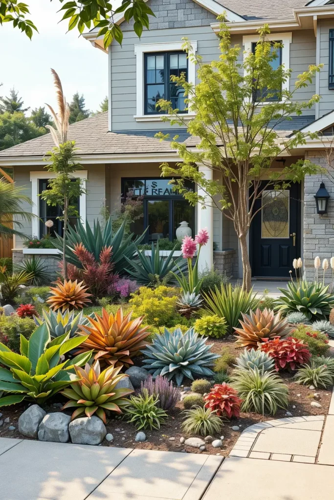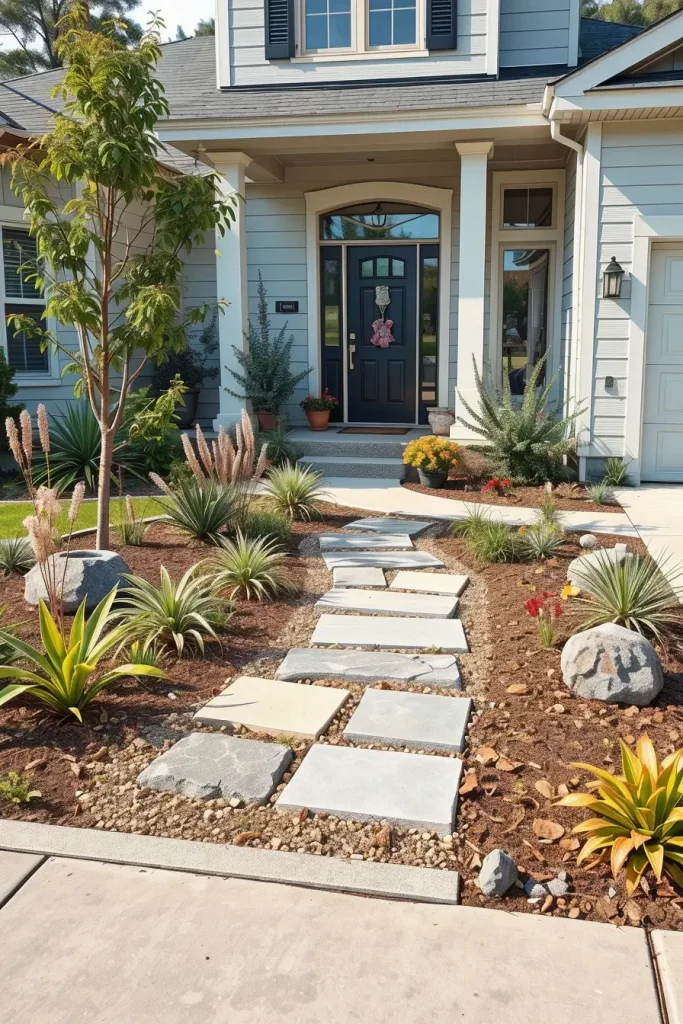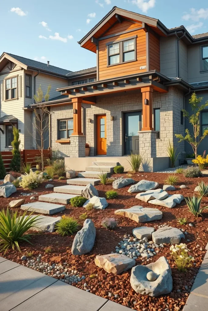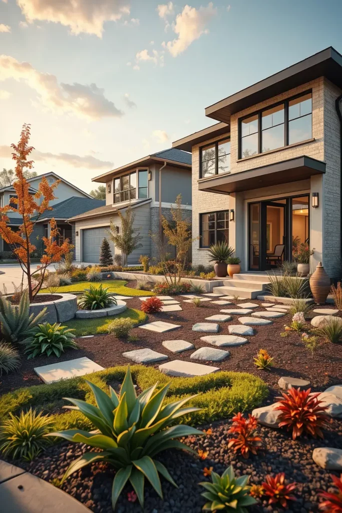 Mixing materials is a hallmark of unusual and designer front yard landscaping in 2026. I approach this strategy with intention, ensuring that contrasts feel curated rather than chaotic. The right combination of materials adds personality and depth to the space.