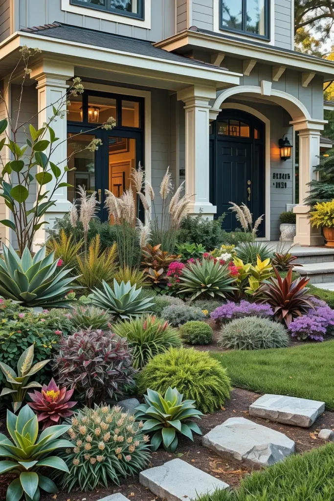 Designer Front Yard Landscaping With Layered Textures
