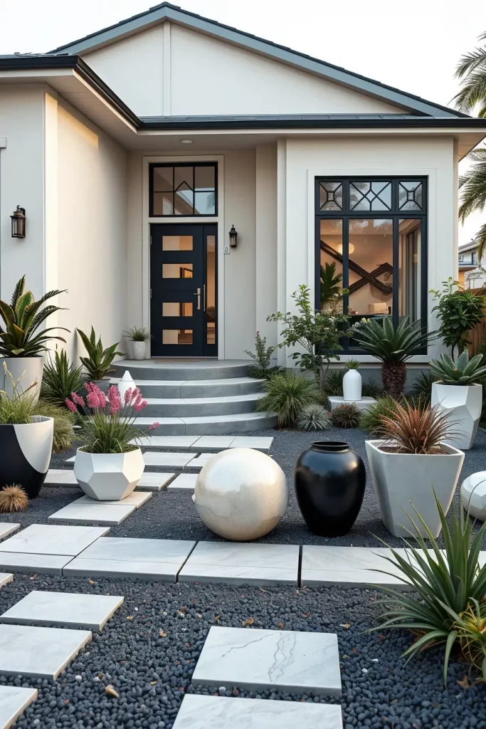 Minimalist Front Yard Landscaping With Artistic Impact
