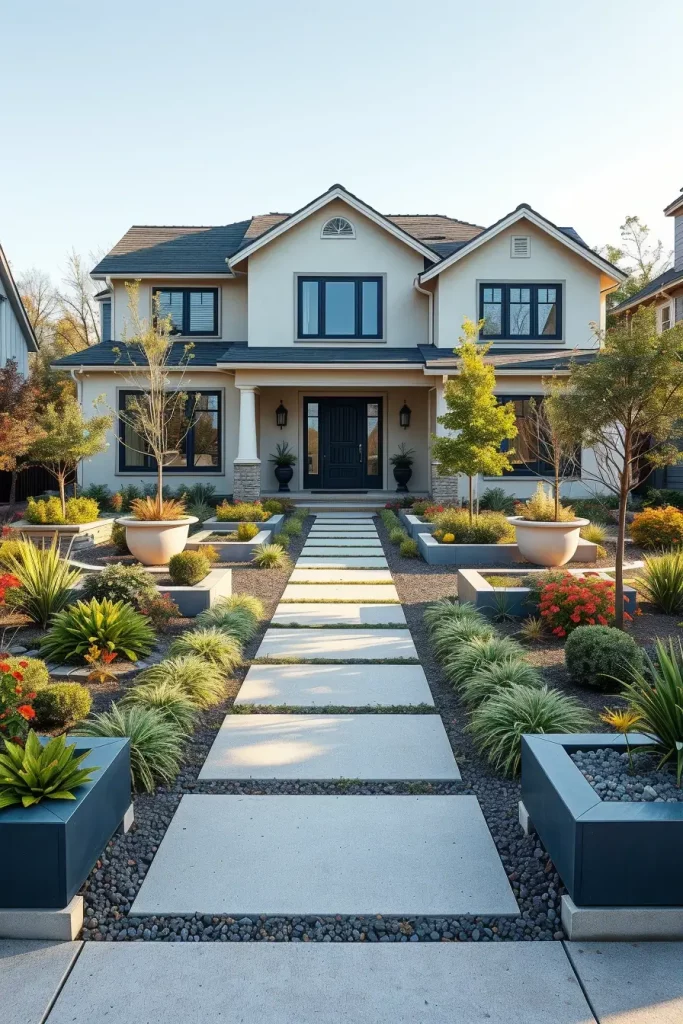 Minimalist front yard landscaping in 2026 is about restraint with purpose. I focus on reducing elements while increasing their visual weight. Open space, negative space, and simplicity allow each component to stand out, creating an artistic effect without overwhelming the viewer.
