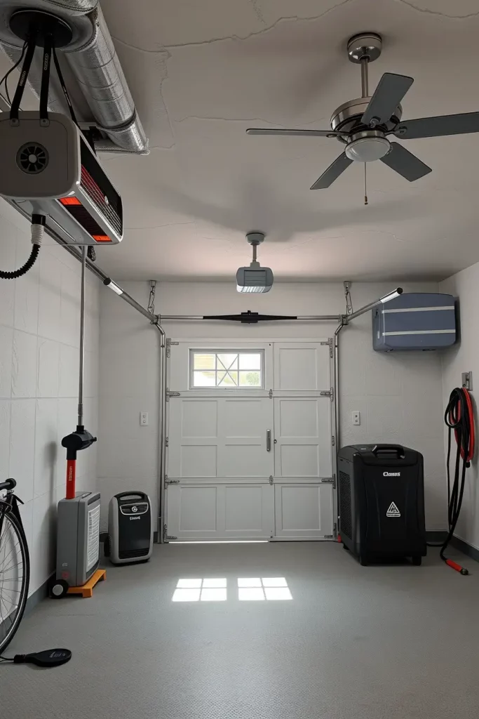 That’s how I approach things: use garage doors that are insulated and strip them with weather guards. To heat, an infrared heater mounted on the ceiling does the job, spreading heat evenly. During the hot months, my go to is an oscillating fan paired with the window or garage door being slightly opened. Humidity control is also key—I put a dehumidifier in the opposite corner along with a moisture absorbing mat by the door and it is imperative for proper climate control.