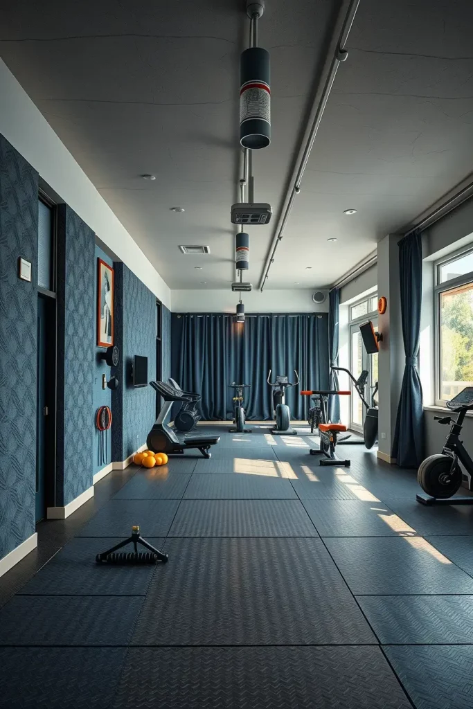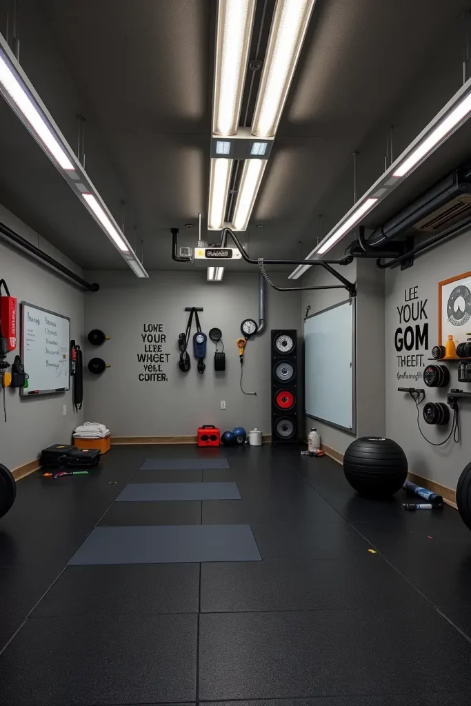 Additionally, I use LED strip lights or panels that change color with the time of day; white light for early mornings and warmer tones for evening workouts. Strong wall decals with phrases such as “No Excuses” or “ train like a beast” can inspire you. To best immerse in the audio environment, having a bluetooth speaker system is a must. Also, adding a small dry-erase board to track goals enhances connection with your milestones and progress.