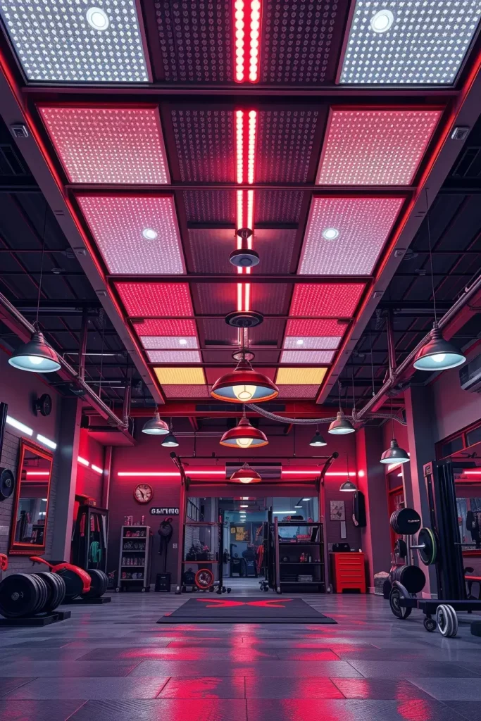 Motion-activated lights improve visibility around storage areas while black or chrome pendant lights add modern style. With the use of red light during cardio, the intensity increases further and simply feels more immersive. I learned from Architectural Digest red lights aid in improving one’s alertness and focus, which is something I have also acknowledged in myself.
