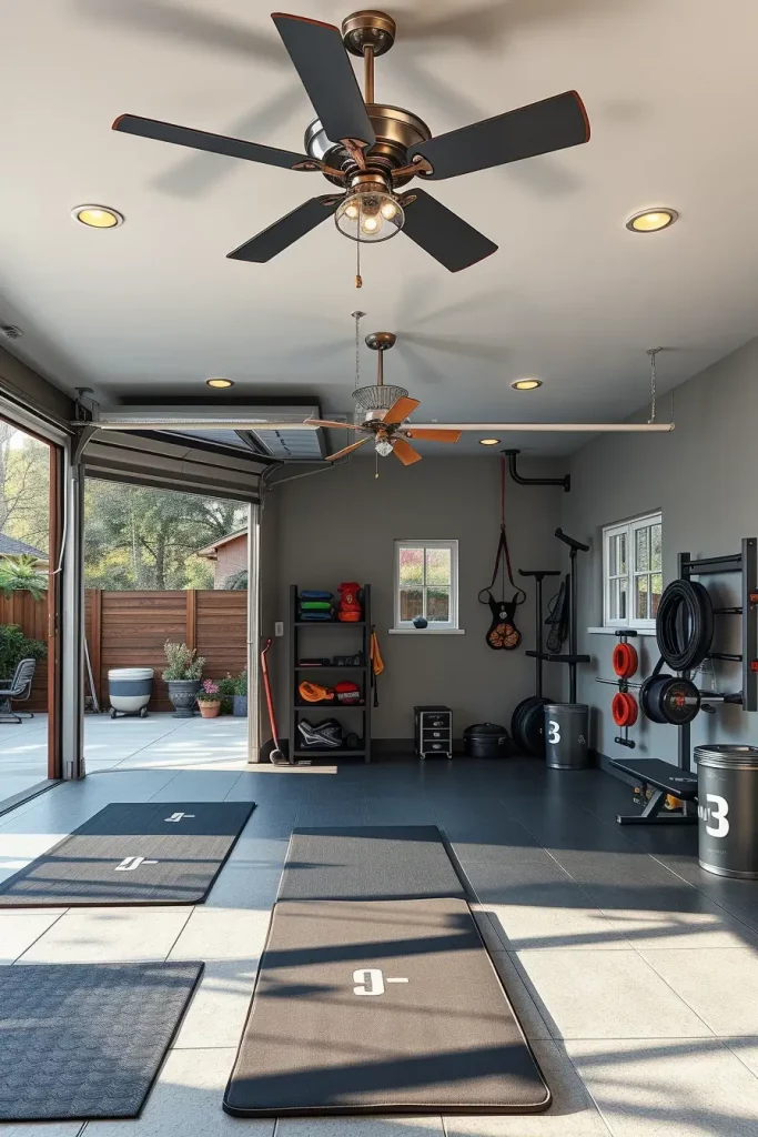 Gym garages are exposed to extreme temperatures. I always take on insulation first; the walls, doors, and ceilings need to be sealed properly so there’s comfort throughout the year. While the temperature no doubt affects performance and protects equipment, consistency is also important. For the summer, fans and portable A/C units are indispensable; for winter, space heaters and infrared panels do the trick.