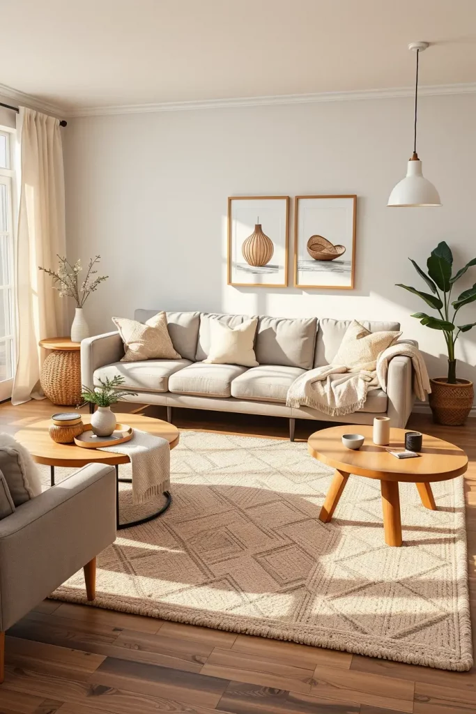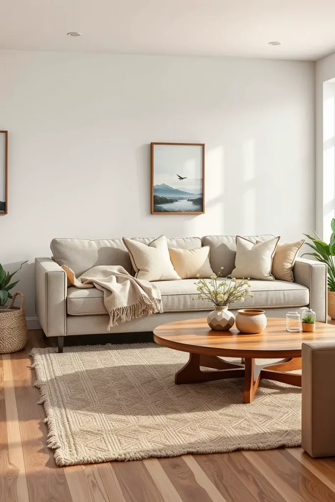 I choose a sofa in the greige color, a taupe floor rug and neutral-tinted pillows with light differences. Even tiny accessories such as ceramic bowls and beige vases placed on a wooden coffee table can help the room look more uniform. I finish the space by including an ivory throw and a lightly textured wall hanging. The most important thing is to find a balance, so the tones give a warm feeling, not sadness.