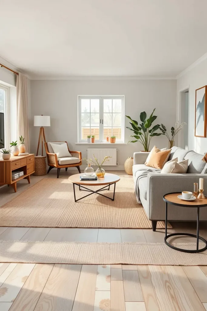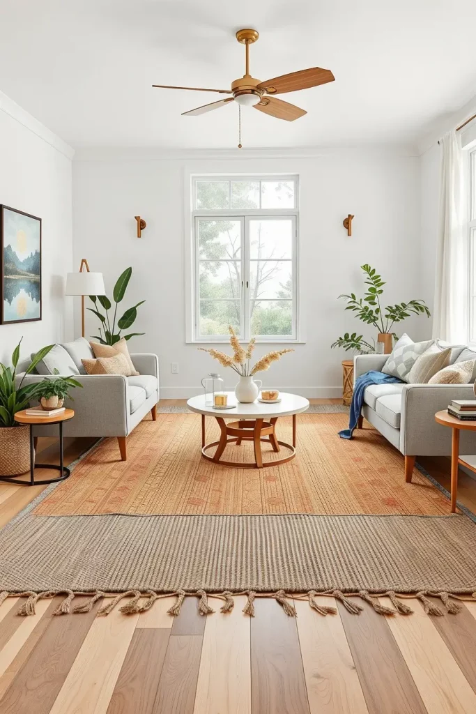 I have discovered that going with rugs in warm neutrals or earth tones makes it easy for a room to work in any season, as suggested by expert designers. As the floor material switches, it reveals a fresh feeling for the place.