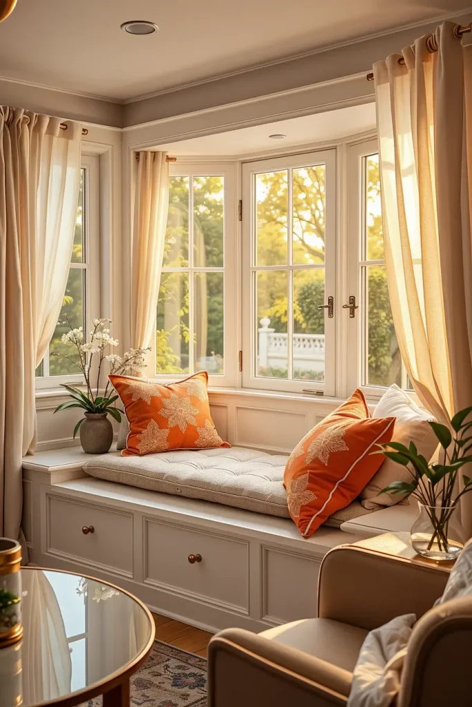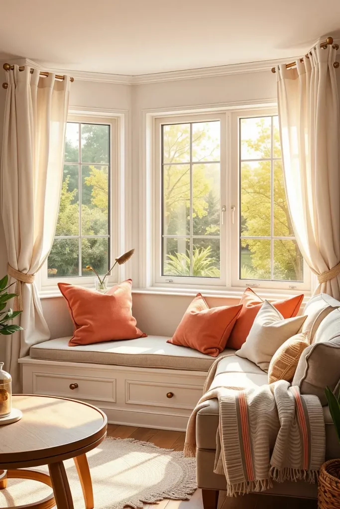 To decorate windows seats, I prefer using cushions made of cotton or linen in colors similar to cream, dusty terracotta or light grey. Placing some padding on a white bench or a stepping stool can make a perfect seat. Sheer curtains soften the sunlight, making the room look as warm as it is in late summer. Introduce a nice cushion or lumbar pillow to offer a different design and more support.