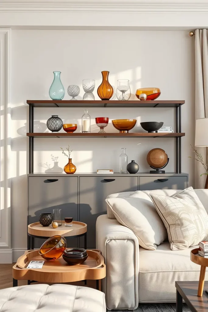 To give your living room a polished look, you could place glass vases and bowls. Glassware sets look lovely in late summer since the weaker sunlight means it catches the light easily and gives the look more dimension, making it less busy.