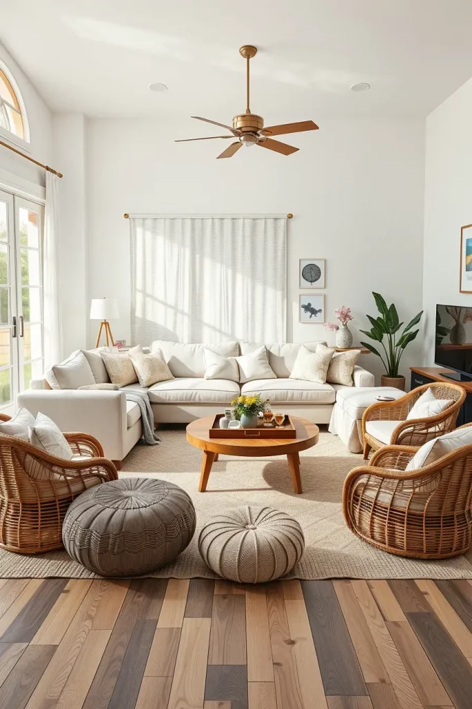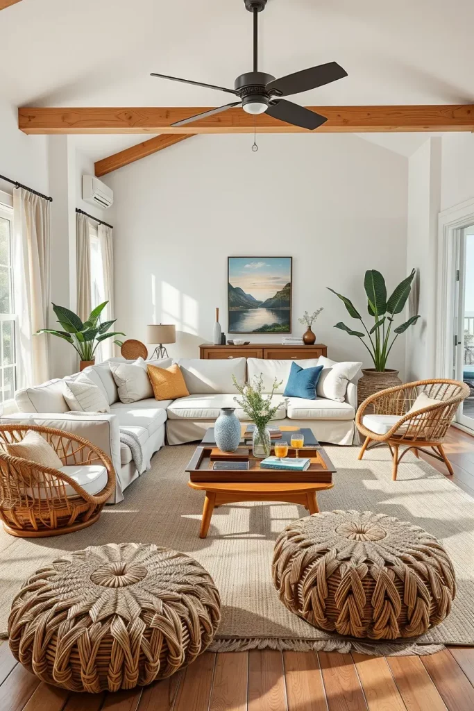 Generally, as summer ends, I spend more time inviting friends over, so my living room is designed with lounge-friendly seats in mind. People should experience an open atmosphere and a chance to chat in pairs in more private areas. I choose furniture that is low and can be adjusted in addition to having soft padding and easy-to-move pieces. Traditional additions are sectionals covered with linen, accent poufs and chairs with lots of pillows. This look shows how late summer feels relaxed and still looks stylish.