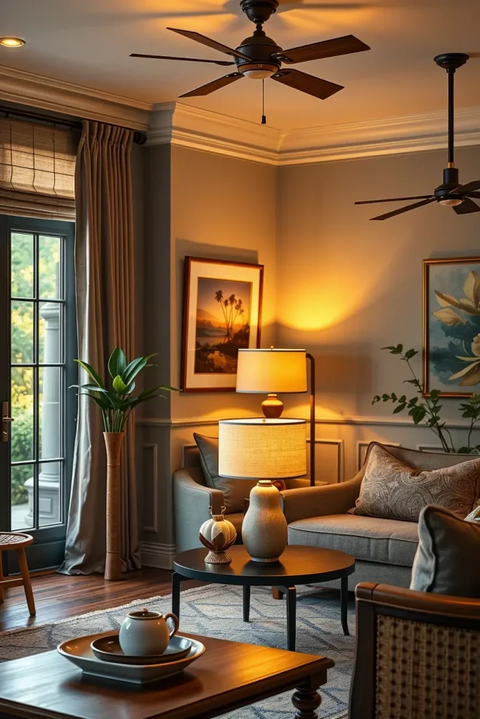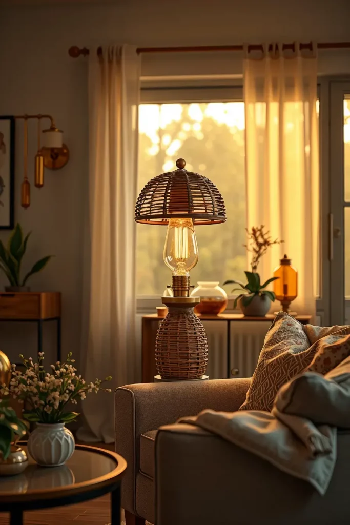 My personal favorite is a wicker table lamp with a warm LED bulb (around 2700K) that mimics sunset tones. Brass or amber-glass sconces help me achieve a nice and elegant feel in the room. Since I love to entertain, I make sure that dimmers are easy to reach.