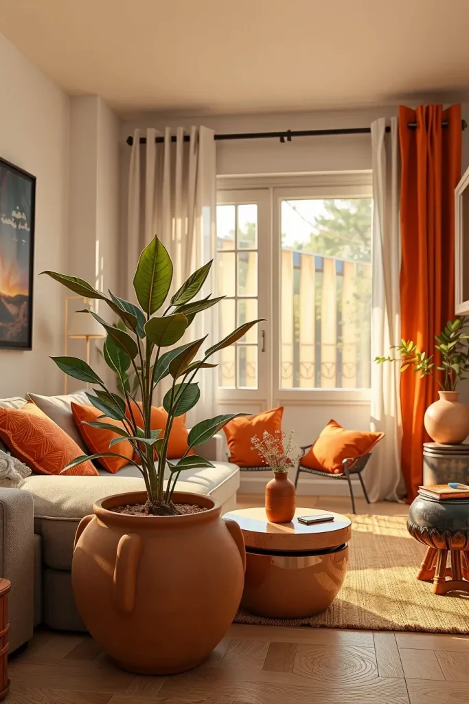 Usually, I choose a terracotta clay pot with a snake plant, some terracotta-colored pillow covers and occasionally a terracotta wall painted as an accent or on canvas art. Candles displayed in terra jars or dishes of the same color can establish the atmosphere easily.