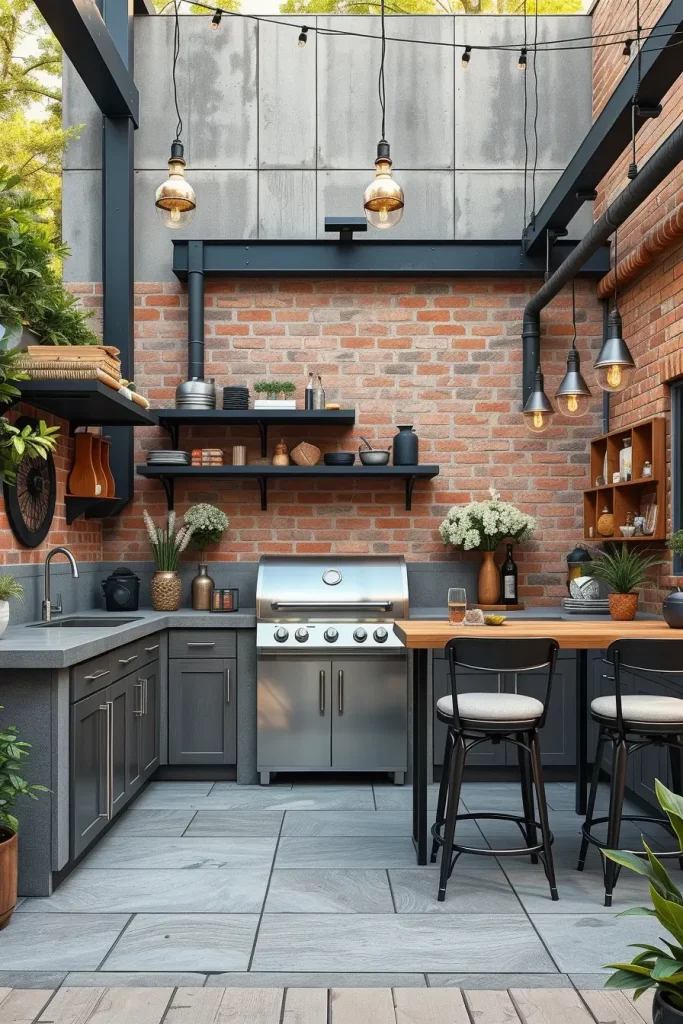 Industrial-Chic Outside Barbecue Areas With Metal Accents