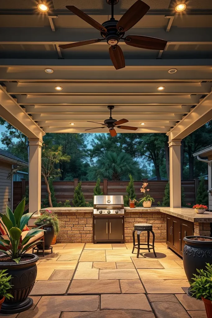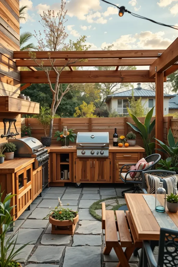 One of the most creative outside barbecue area ideas 2026 involves seasonal adaptability. I design outdoor grill zones that can transition effortlessly from summer gatherings to cozy autumn evenings. This means planning for layered lighting, movable decor, and flexible textiles that enhance comfort year-round.