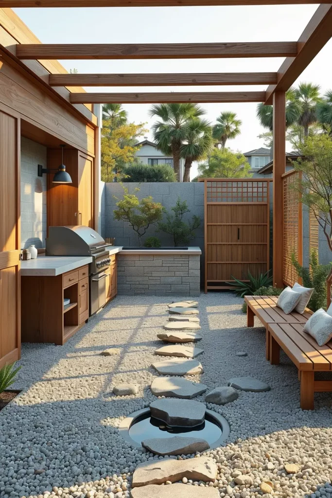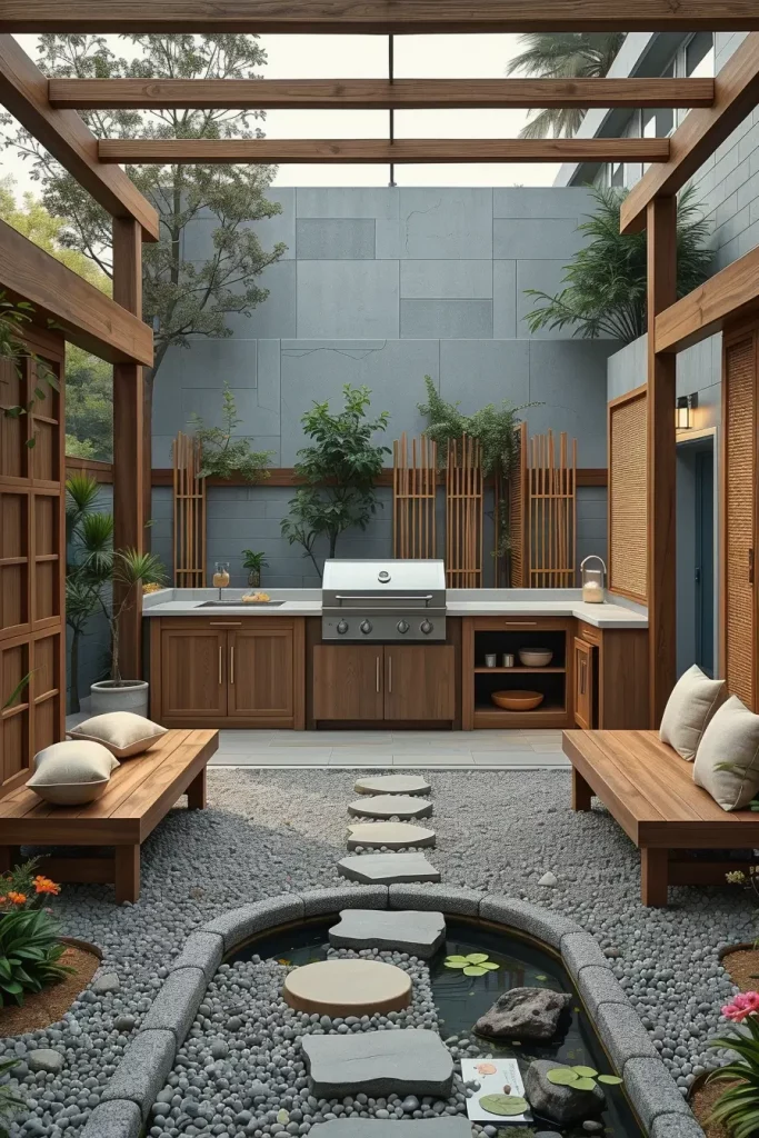 In my experience, Zen barbecue gardens are ideal for homeowners seeking mindfulness and intentional living. Architectural Digest has highlighted Japanese minimalism as a major influence in outdoor design trends, and I find its principles especially effective in creating uncluttered, purposeful spaces. Cooking becomes a meditative ritual rather than a rushed activity.