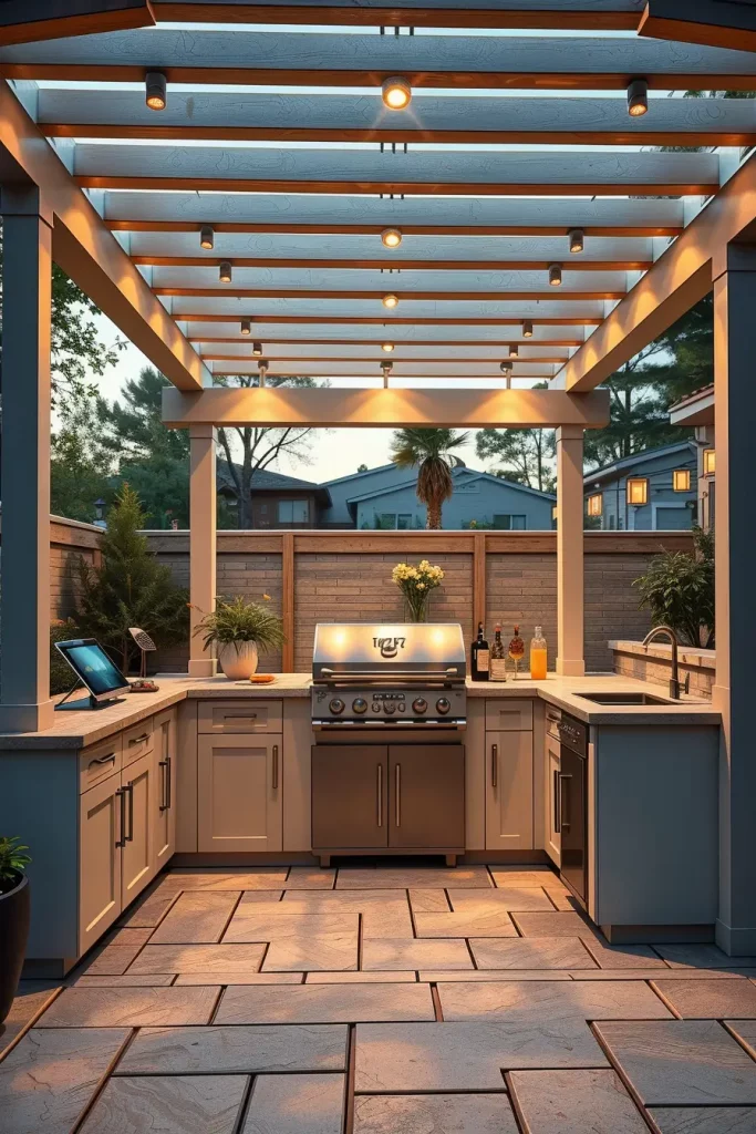Among the most practical outside barbecue area ideas 2026 is the integration of smart technology. I approach outdoor kitchens with the same technological sophistication as indoor ones. Wi-Fi-enabled grills, temperature monitoring systems, and integrated lighting controls allow homeowners to manage cooking and ambiance seamlessly.