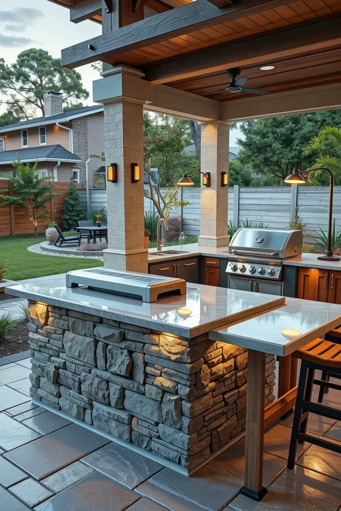 From my perspective, the countertop is where guests naturally gather. Elle Decor has emphasized that outdoor kitchens should mirror indoor sophistication, and I fully support that idea. Investing in high-quality surfaces dramatically increases durability and visual impact.