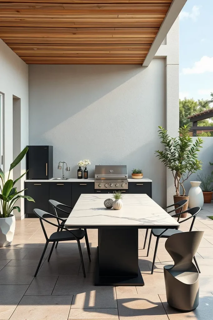 Artistic Outdoor Kitchen Layouts With Architectural Geometry