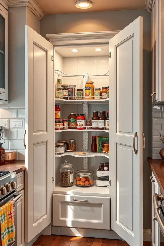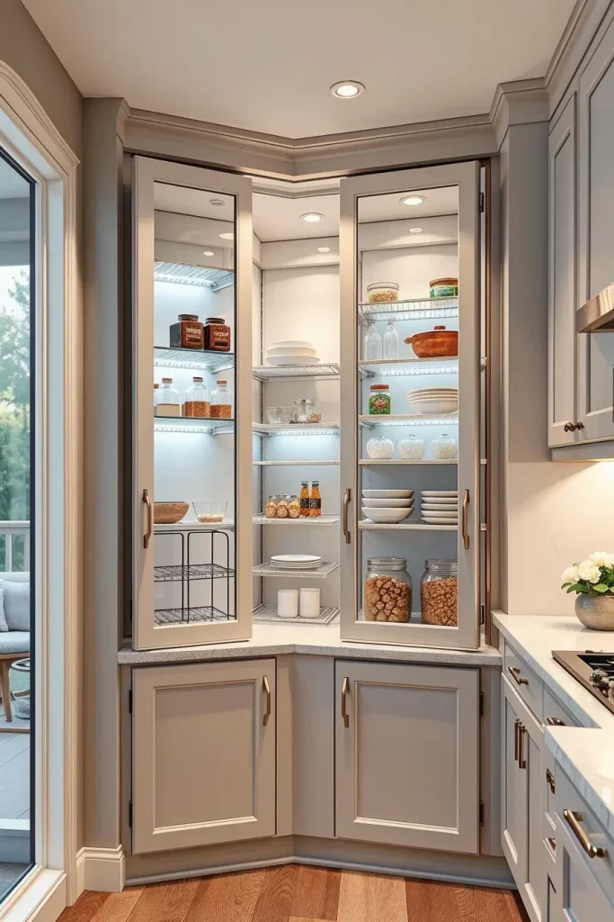 Corner Pantry Cabinets To Utilize Awkward Angles