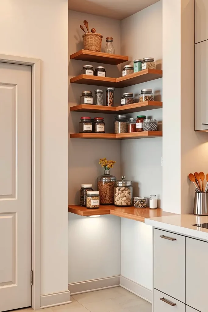 Corners are something that are wasted a lot of the time in small kitchens, but I always try to persuade clients that there are custom pantry cabinets that can be made for these tight angles. A corner pantry adds depth without invading the main floor space and is of value in compacted homes or having a studio layout.