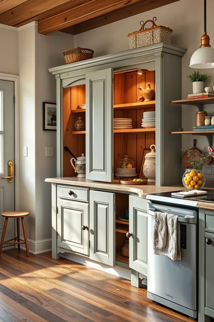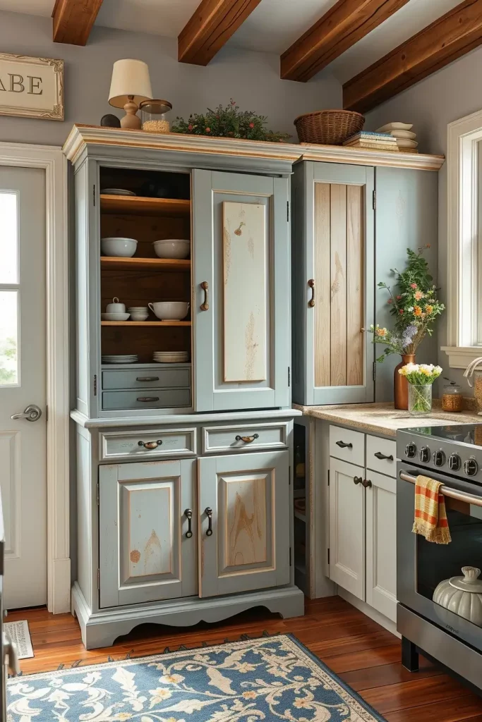 Using an old armoire as a pantry cabinet, not only does it add character, it brings unique function into small houses. I’ve had clients fall in love with the charm of antique furniture that has a story to tell. In compact kitchens or open-plan studios, a freestanding armoire can combine a pantry with a flair for decoration.
