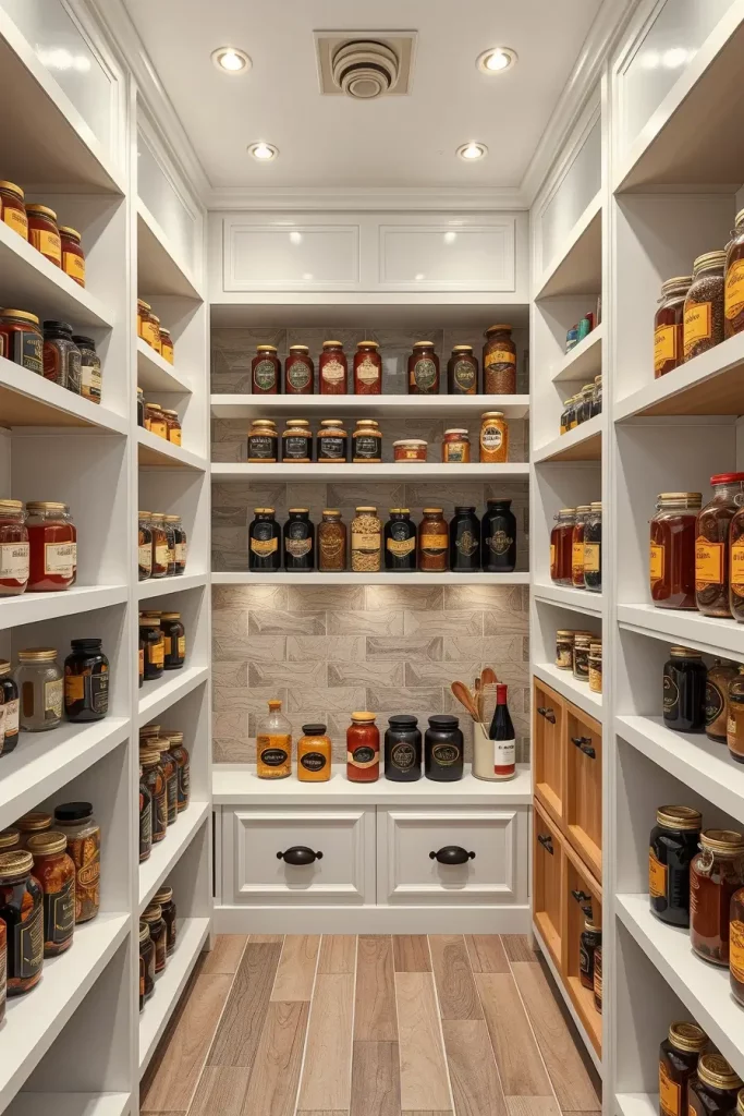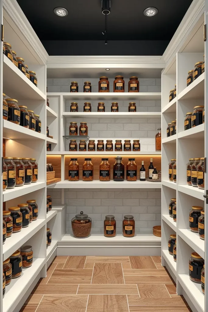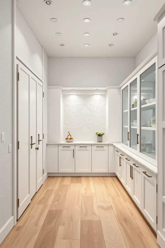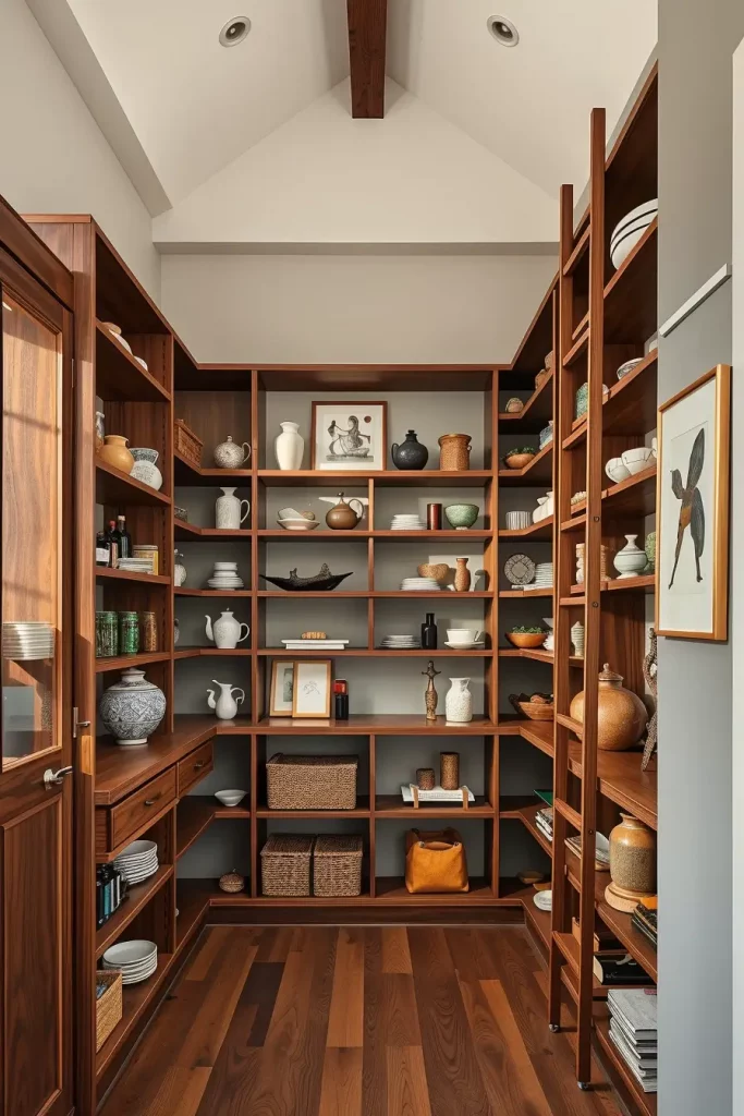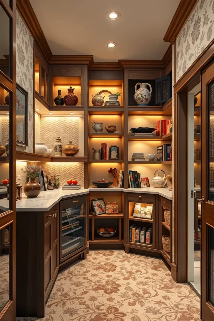 Incorporating decorative niches in your pantry allows for a combination of display and storage. A popular trend is to create recessed wall cut-outs and line them with shelves and lights in order to break the dullness of the monotony of cabinetry. Such features add interest and architectural character to the region while also transforming the space from a purely servicing area into an artistic stamp of design.