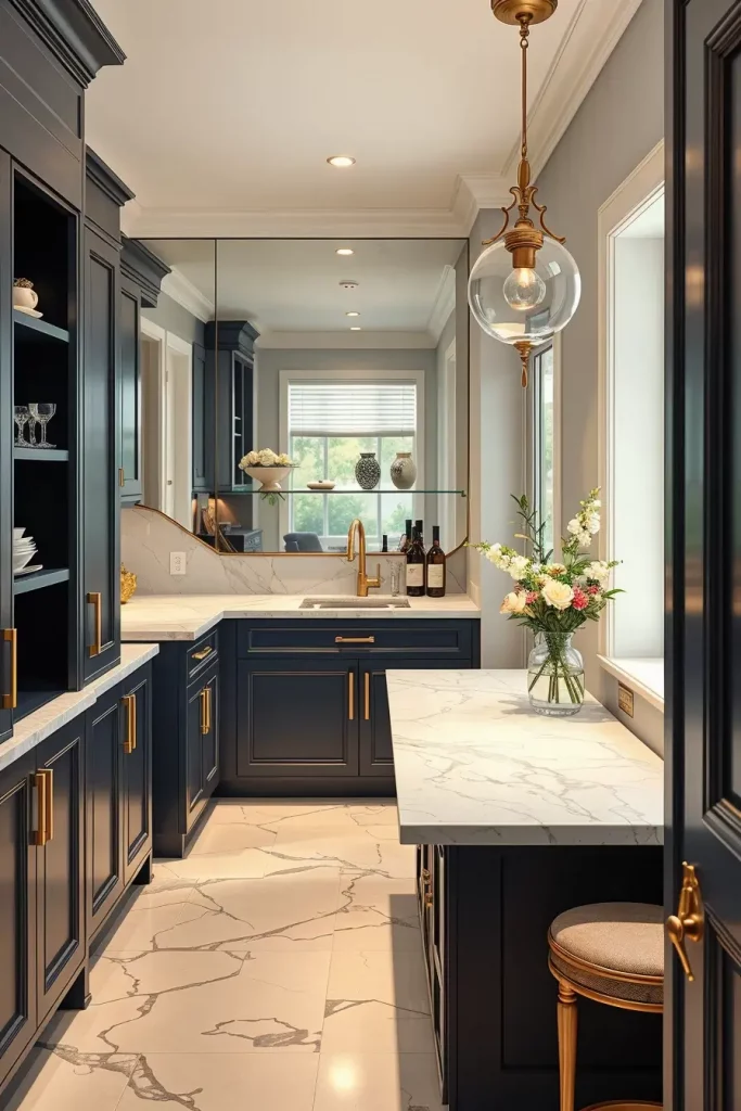 Effects of Mirrored Backsplashes on a Butler’s Pantry