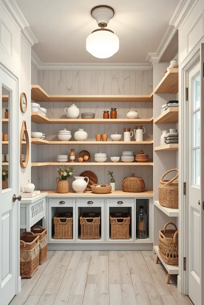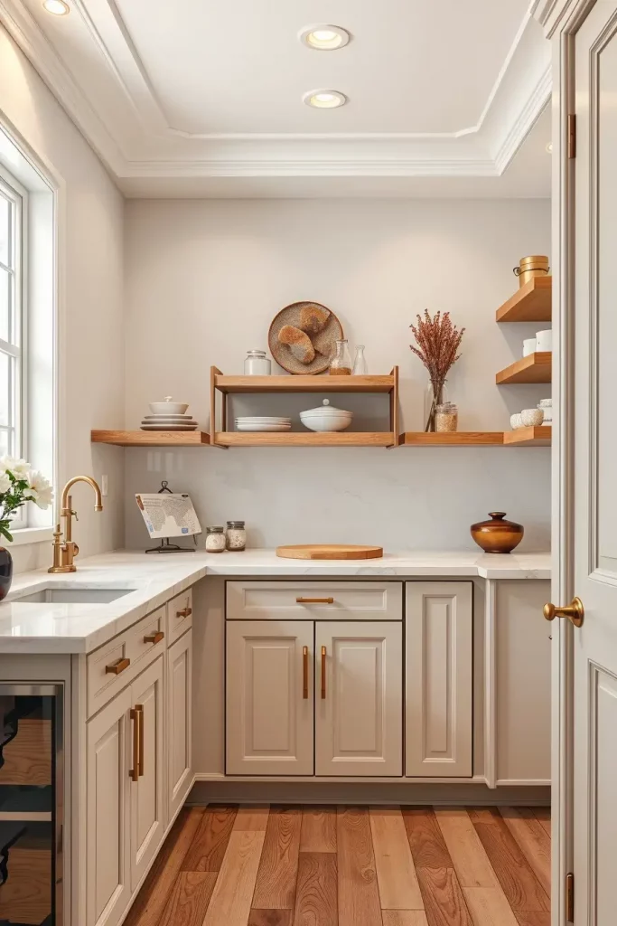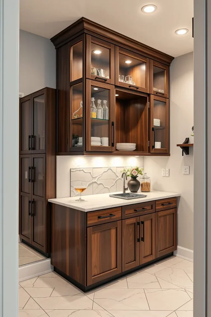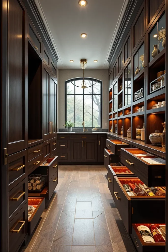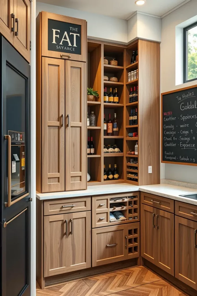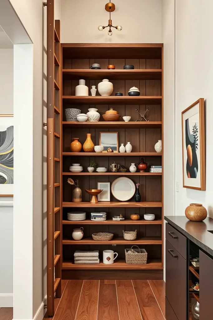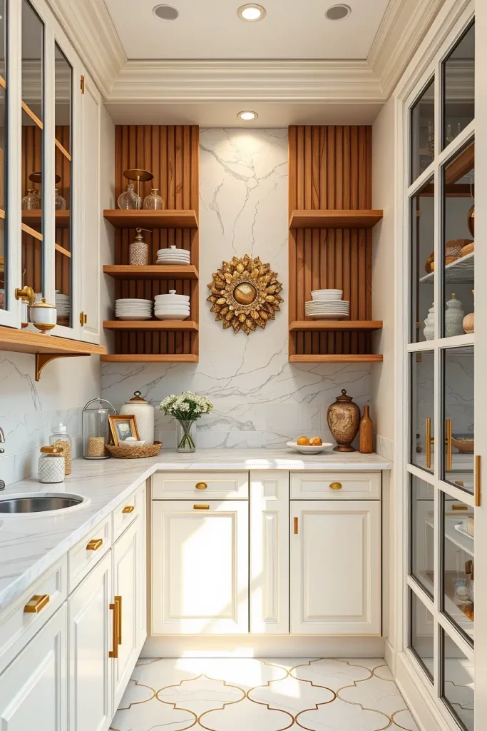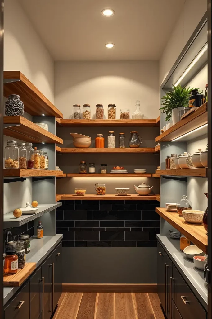 If I were to build on this design, glass decanters and polished trays would make a stunning addition to a mini bar setup. It makes the pantry multifunctional and transforms the space into an entertainment zone.