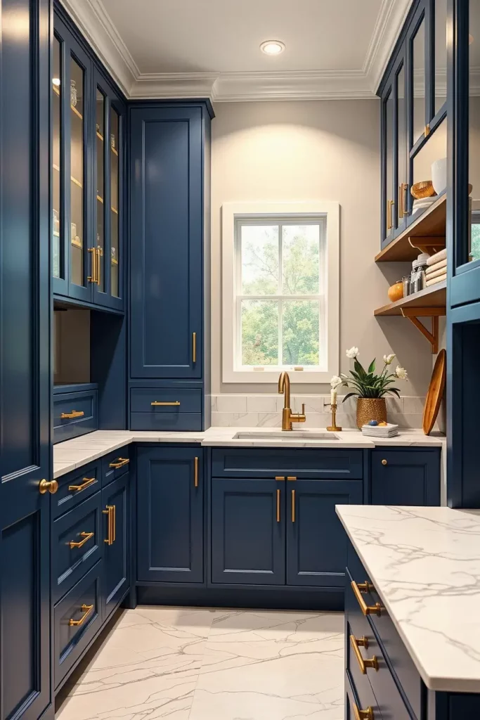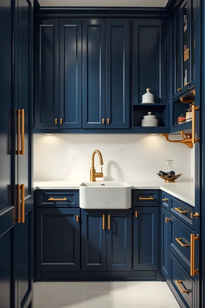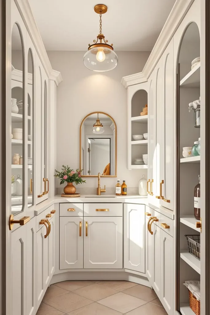 One of the most stylish samplings in my pantry remains the use of gold fixtures. It does not matter if you are going for classic luxury or a hint of art deco. Gold instantly adds some warmth and richness visually which brings everything together beautifully.