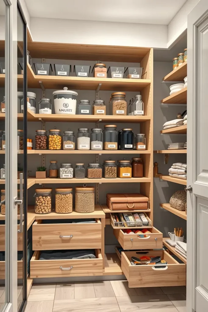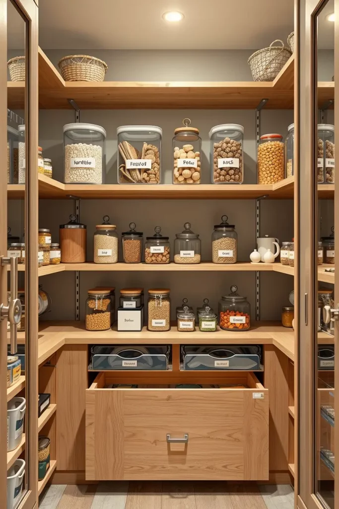 Perhaps one of the best methods designed to enhance the visual aesthetic of a pantry is to use designer bins with custom containers that incorporate both efficient organization and beauty. This is a solution I am always happy to offer to my clients aiming for an uncluttered appearance while still prioritizing easy access. Structured containers made from acrylic, bamboo, or metal simplify and enhance the aesthetic of the space while streamlining visual access to everything.