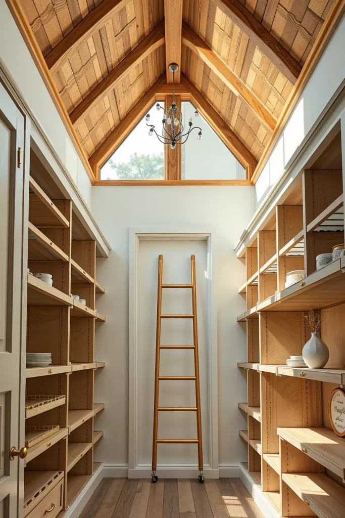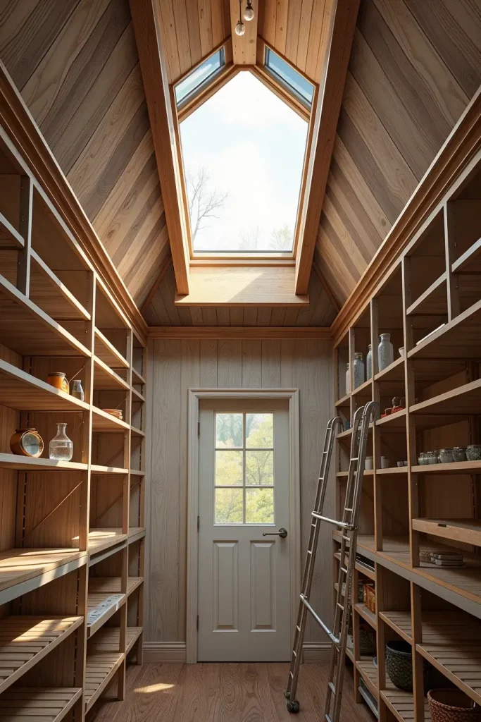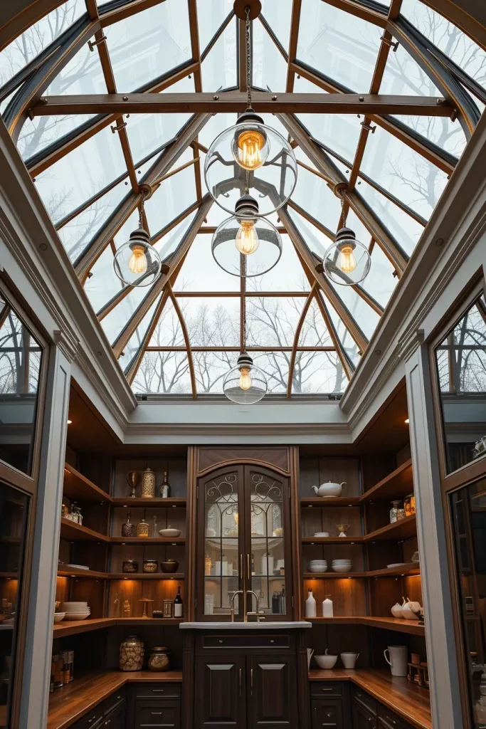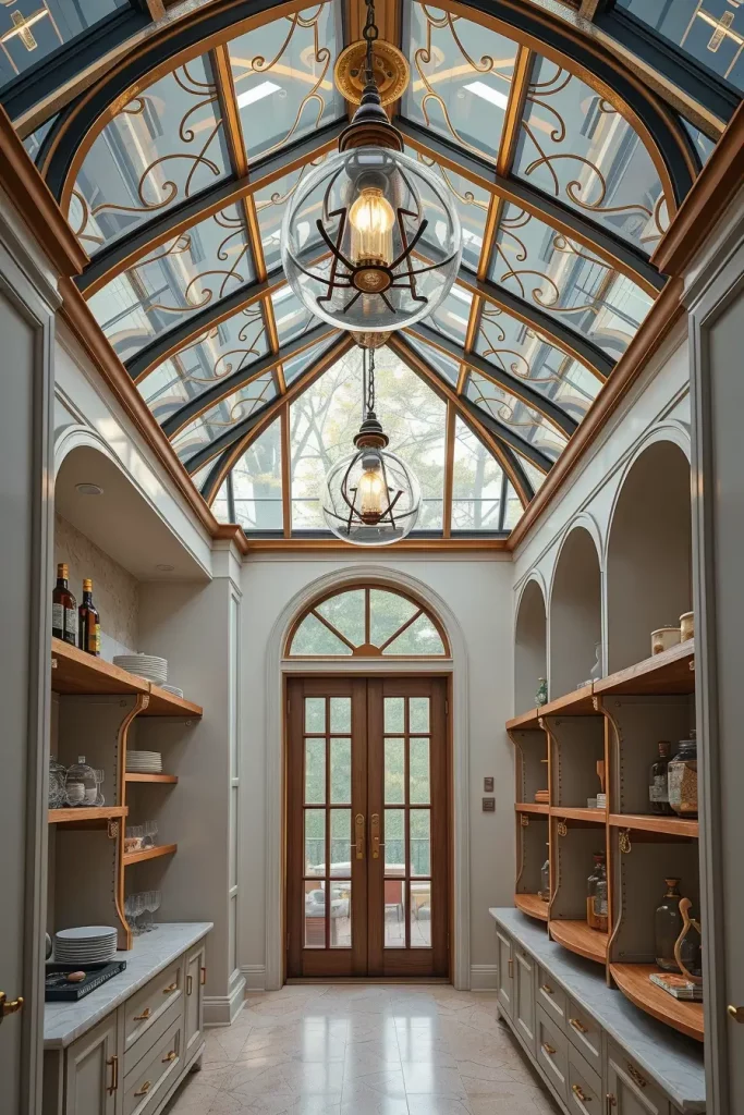 In structurally tall buildings, vault pantries paired with skylights can serve as an awe inspiring centerpiece. The interplay between height, natural light, storage, and ambience is truly marvelous. Skylights add a free, airy feel to rooms while also reducing the usage of artificial light during the daytime.