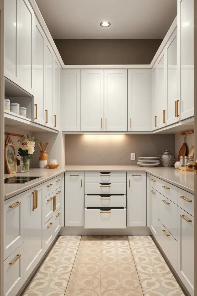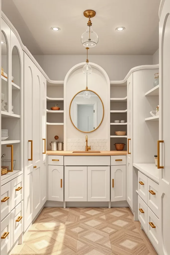 In any chic pantry, curved cabinet doors are a signature trademark. They soften visual lines and provide a warm, custom touch to the room. I especially appreciate this style for pantries in homes that feature arched windows or rounded architectural elements because it adds refinement and improves traffic flow in tight spaces.